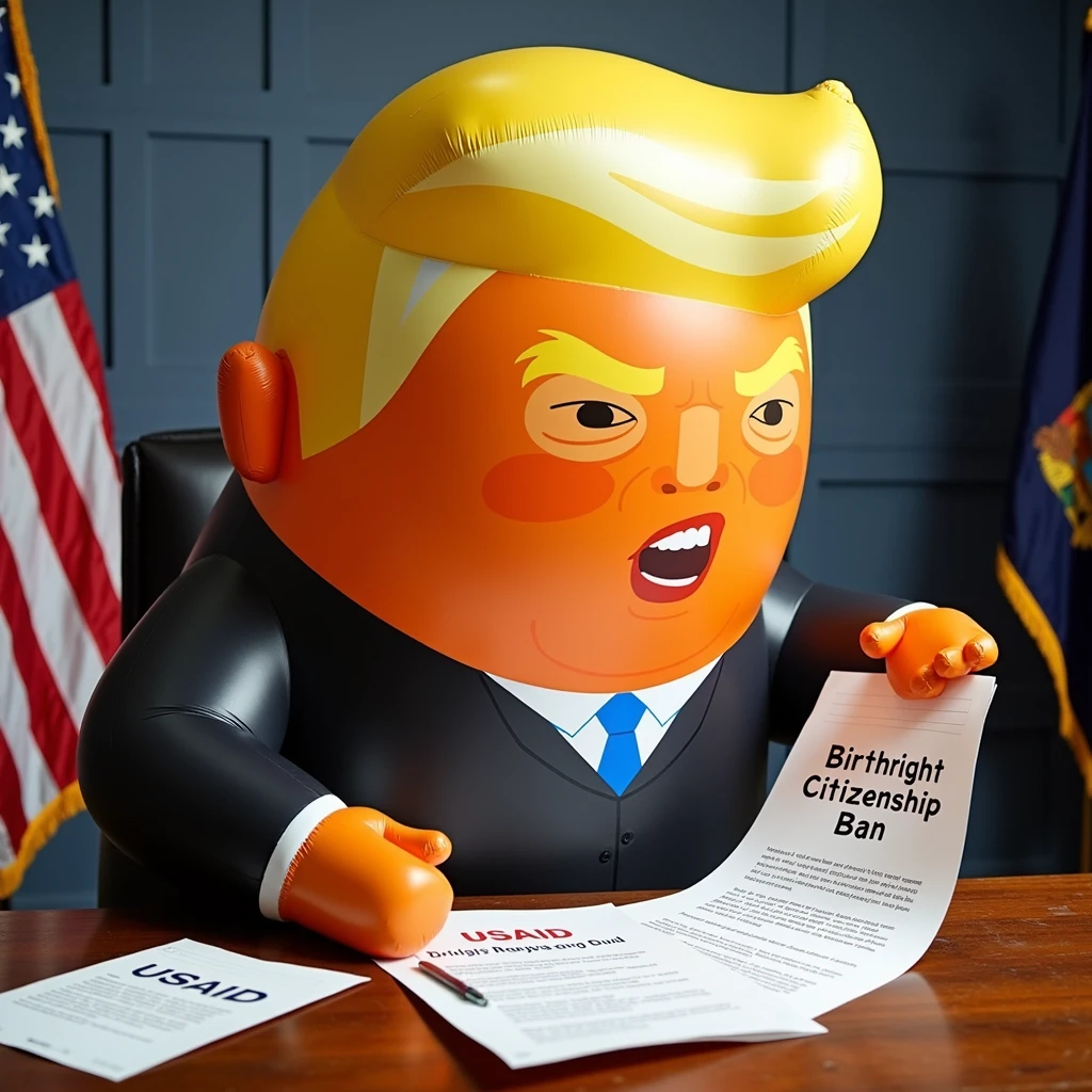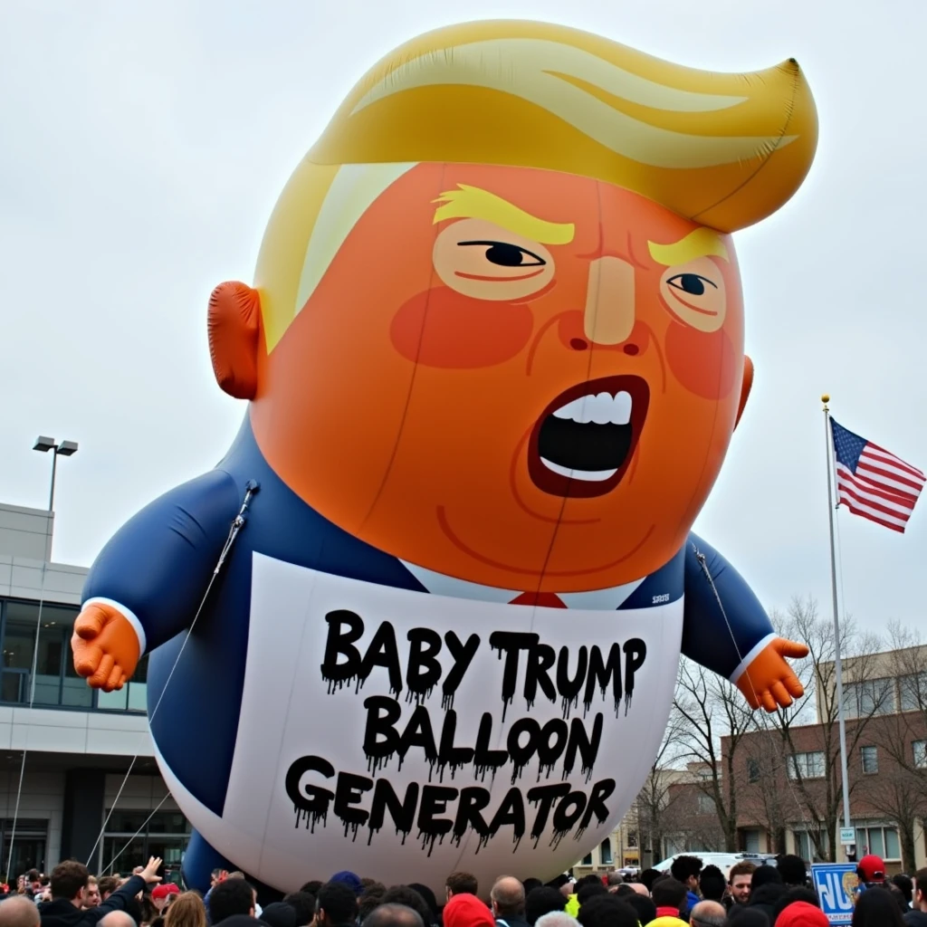 Introducing the Baby Trump Balloon Generator—your ticket to presidential mischief across space and time!