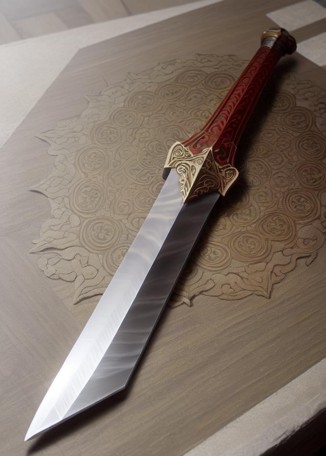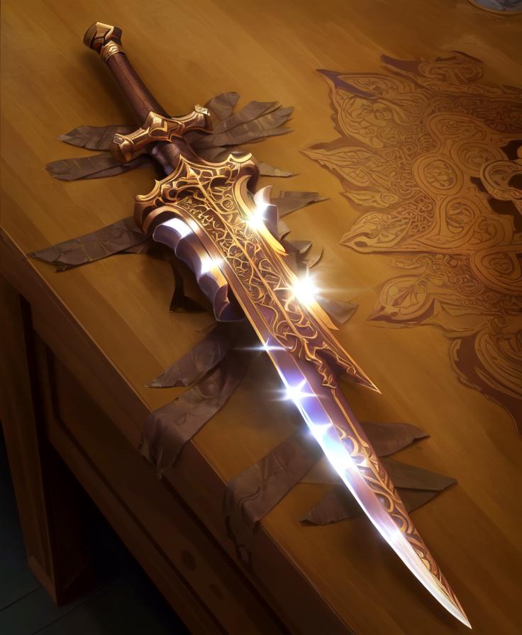 <lora:ldmarble-22:0.8>a detailed sword, dmarble, intricate design, weapon, no humans, sunlight, scenery, light rays, fantasy, sharp focus, extreme details