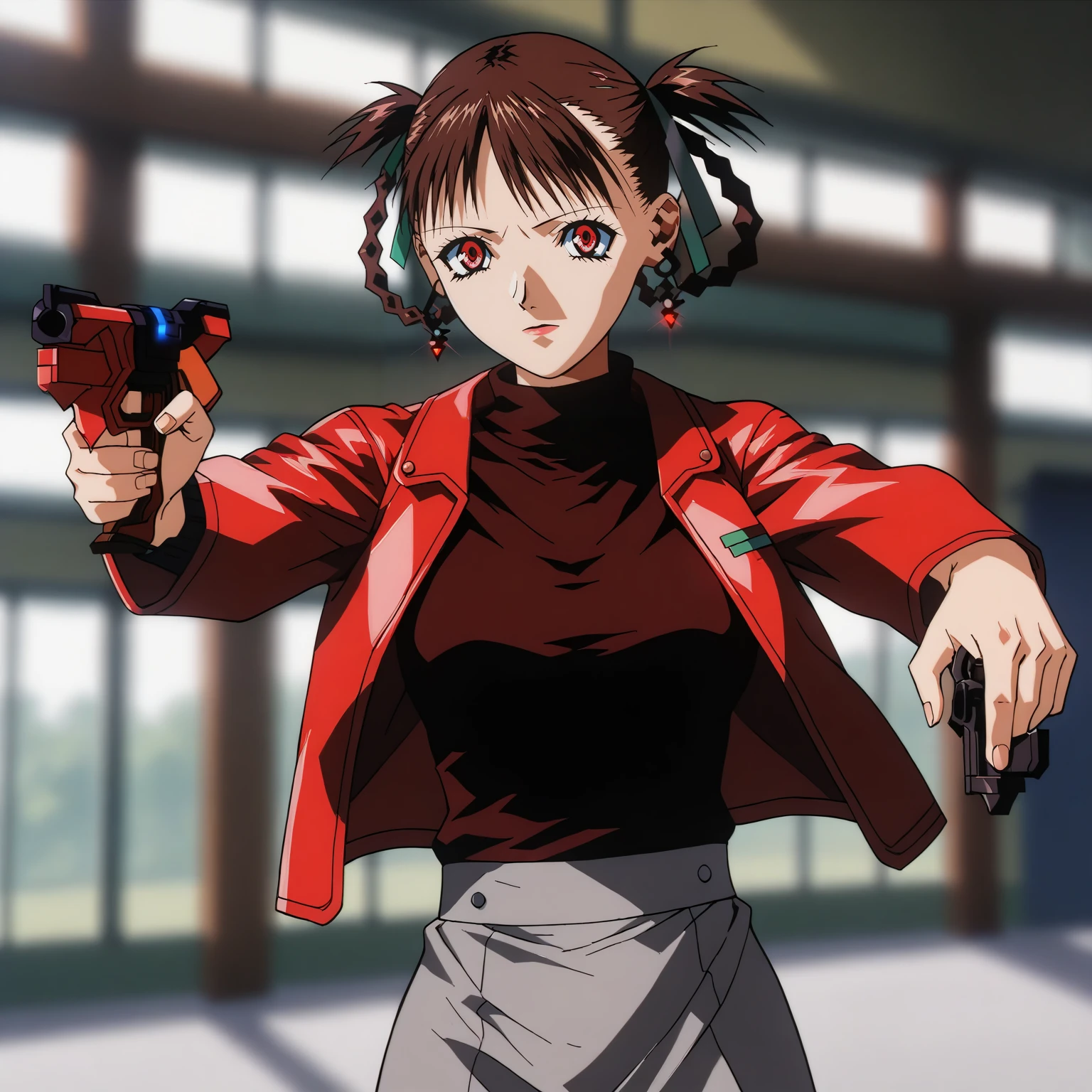 holding_handgun,aiming,finger on trigger,