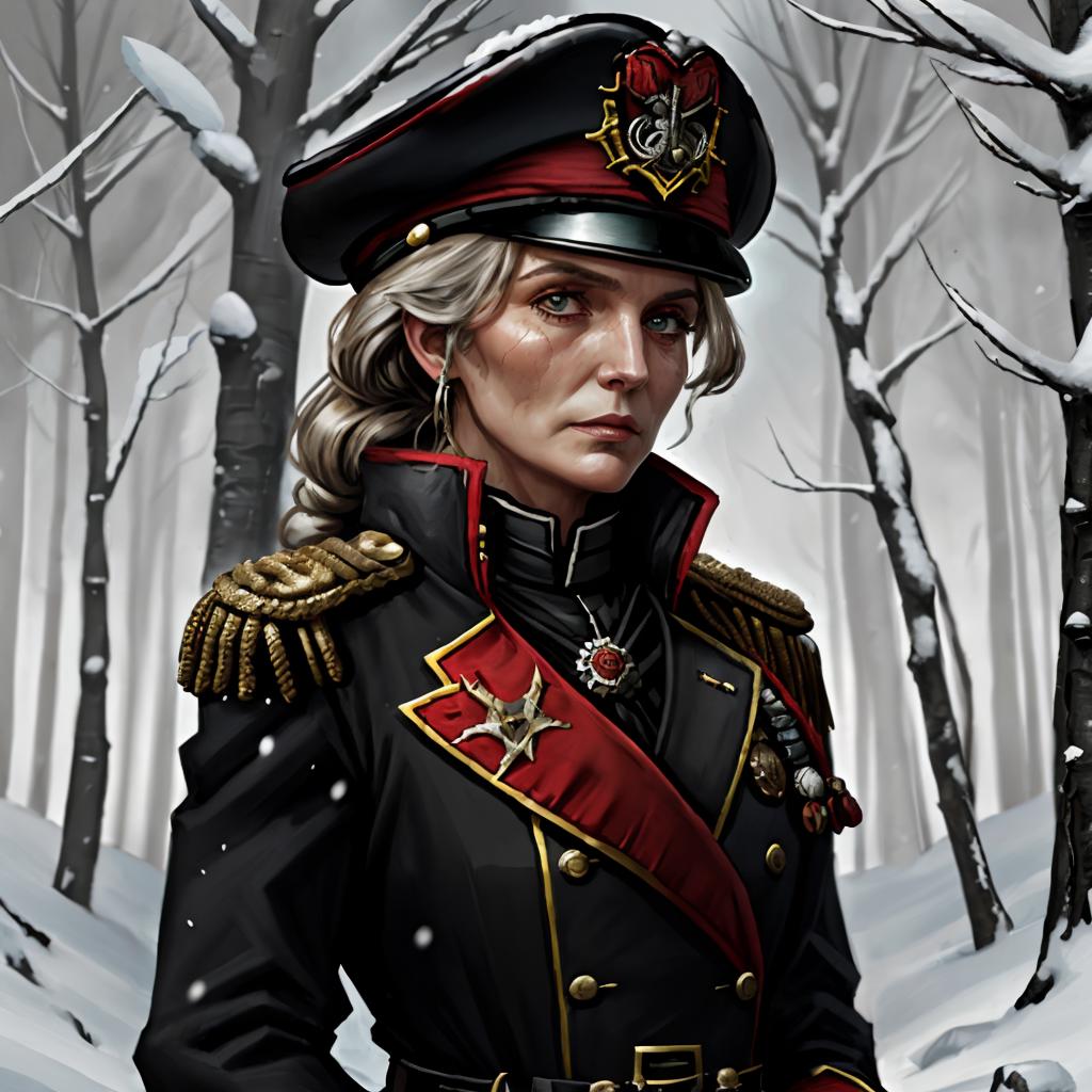 I retrained the LORA from scratch, but this time I used regulation images and captioning (which I didn't include when training the model previously, by accident). Now the LORA shouldn't affect the whole image and should concentrate on the military uniform. The general style of Warhammer 40k art will be lost, and I also noticed that the red sash and golden horizontal cords on the uniform are rarer, which is not preferable. Also, this made it easier to change the colour of the uniform.