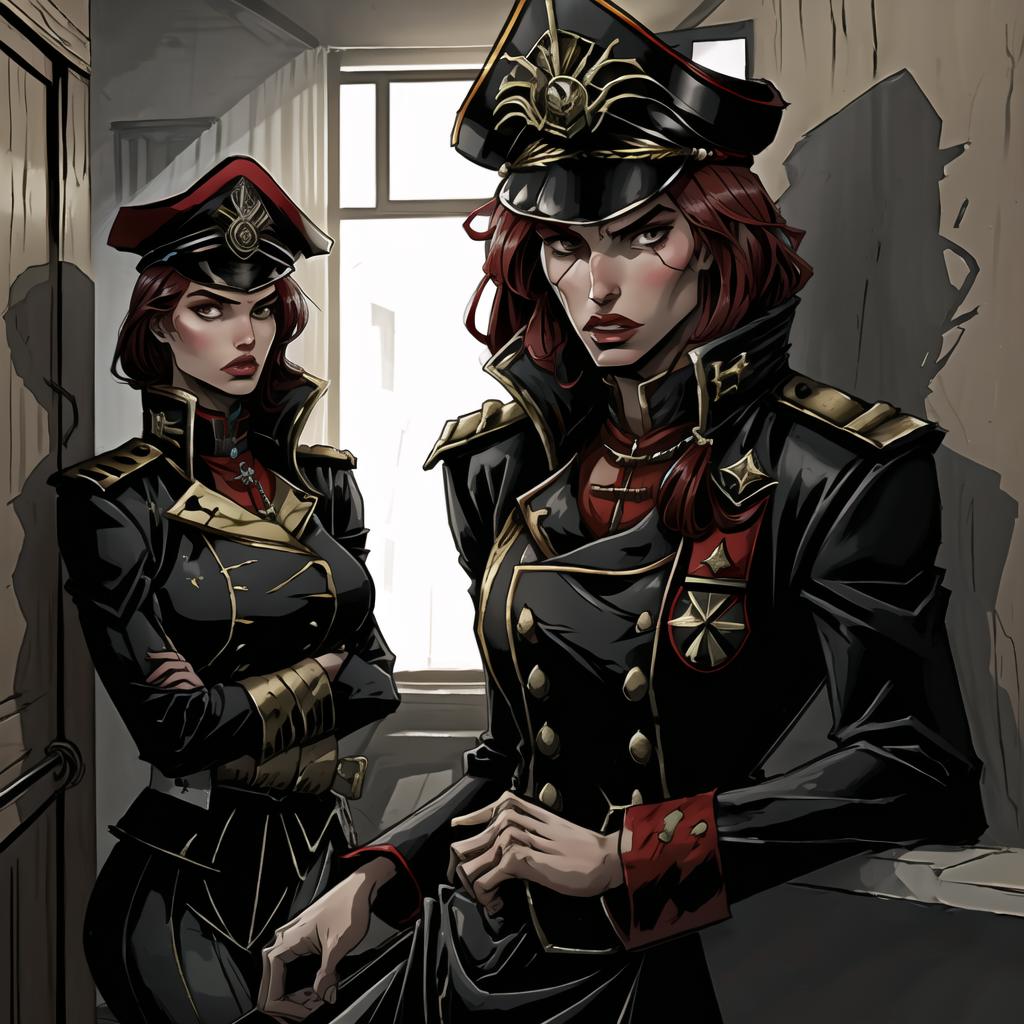 The prompt was a simple concept: "girl, black uniform, arms crossed". Although V2 has affected more of the image than just the uniform, the impact is way less than that of V1, which didn't follow that the prompt "black uniform" was connected to the commissar.