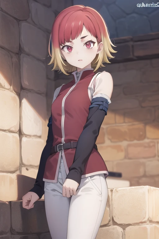 appearance : lana, short hair, red hair, blonde hair, red eyes, small breasts