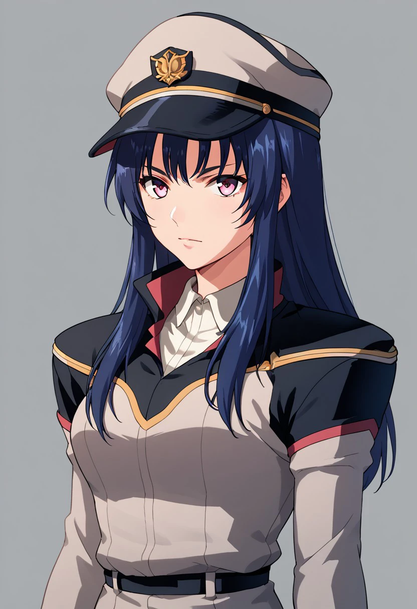 nicky taylor, blue hair, long hair, pink eyes, military uniform