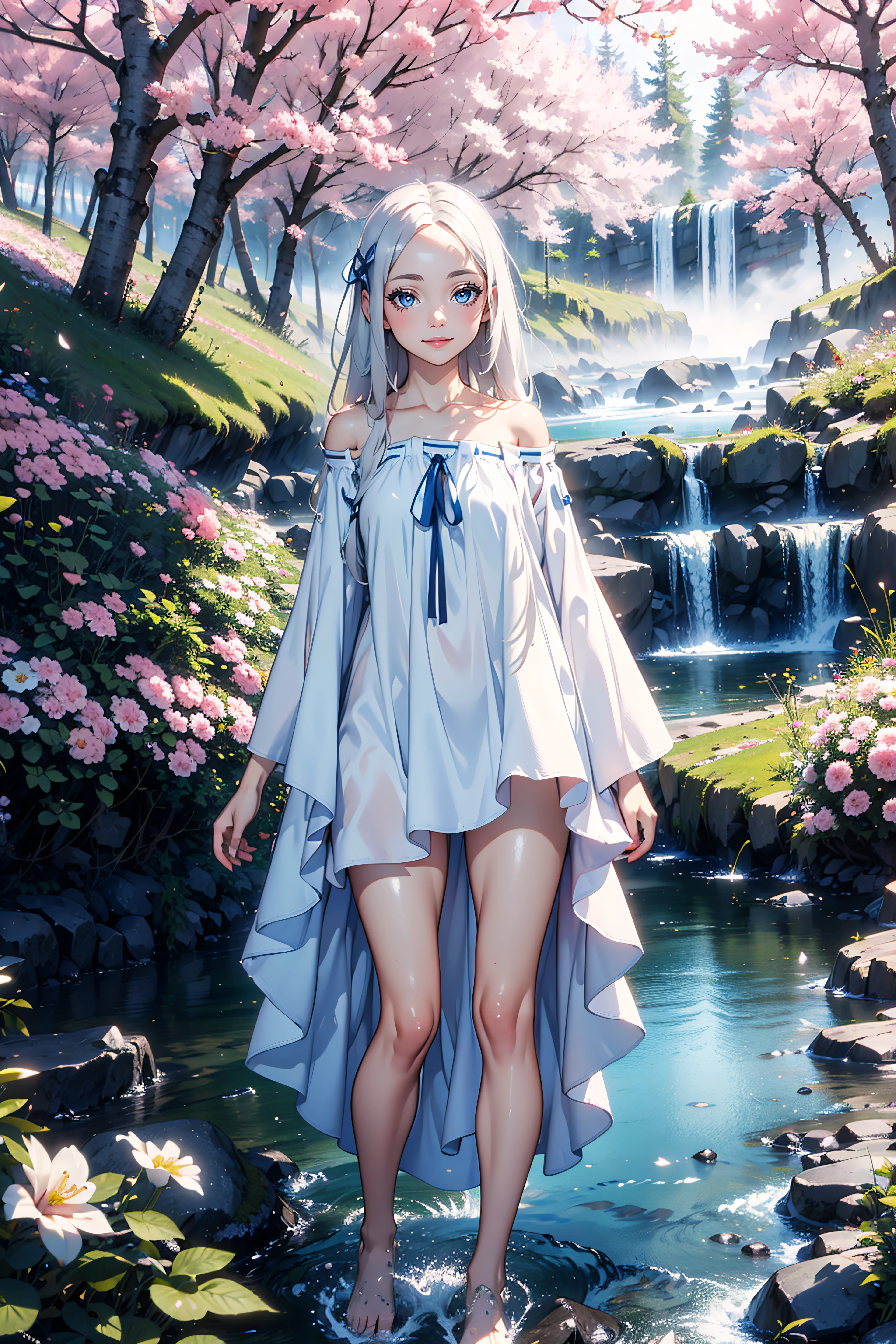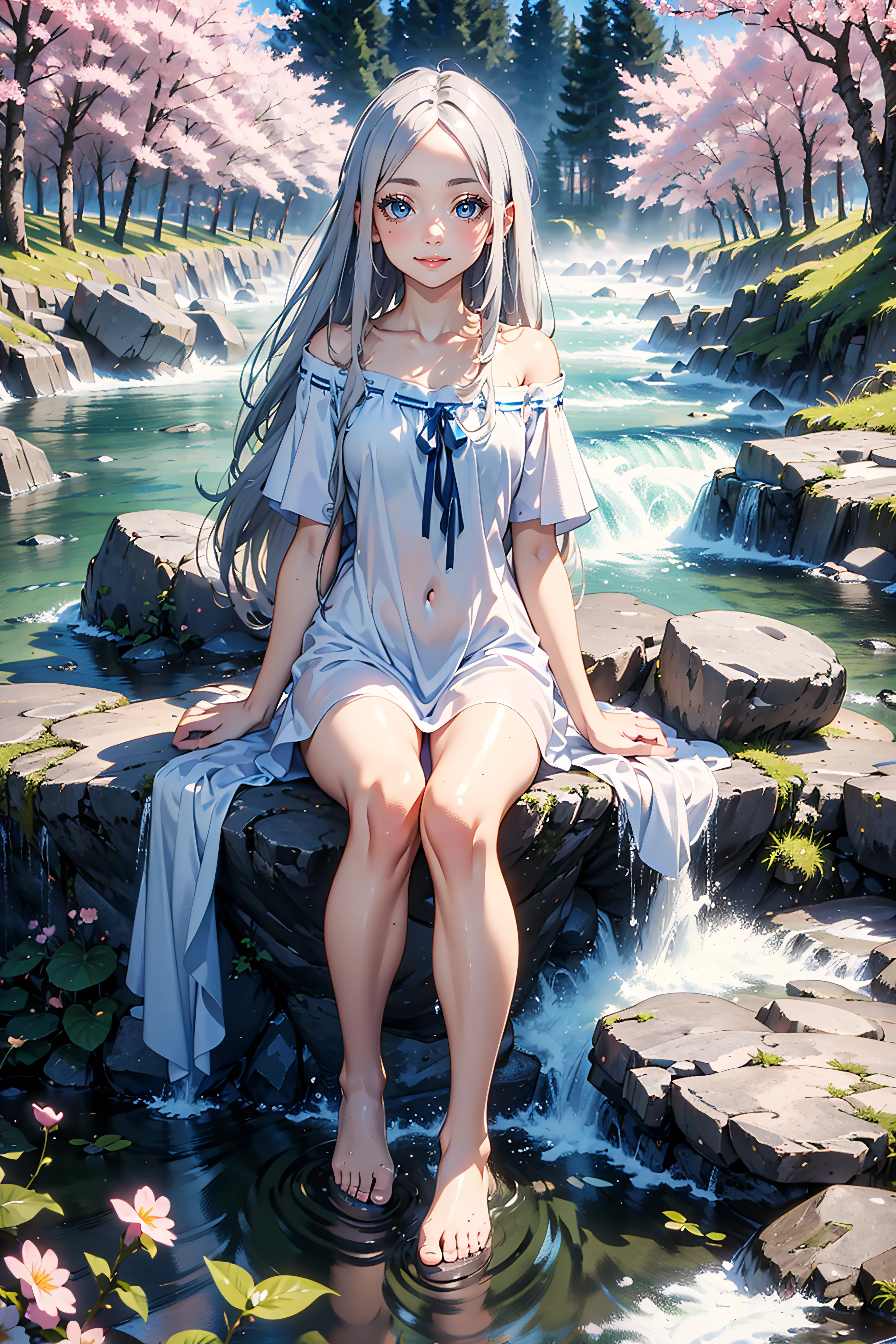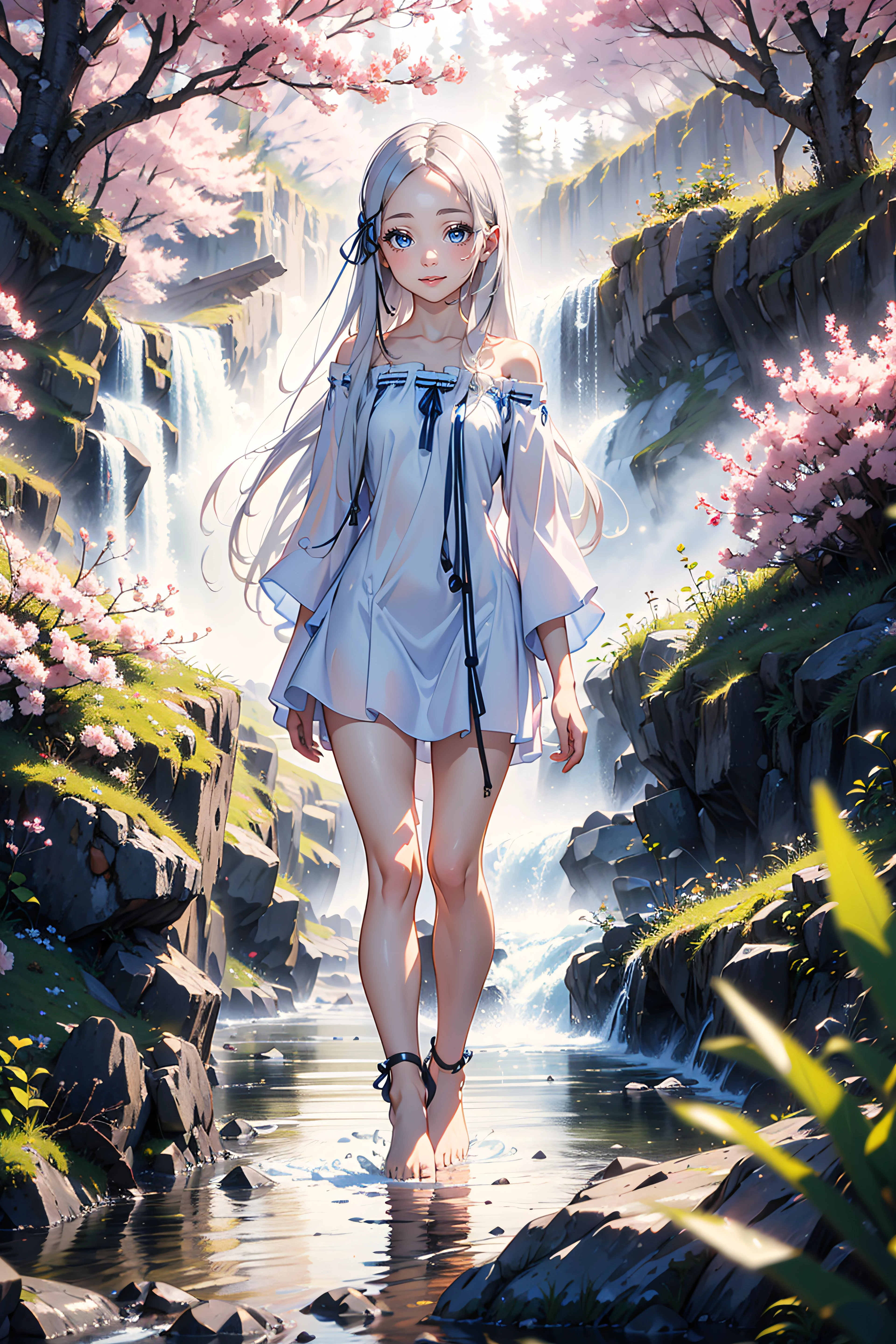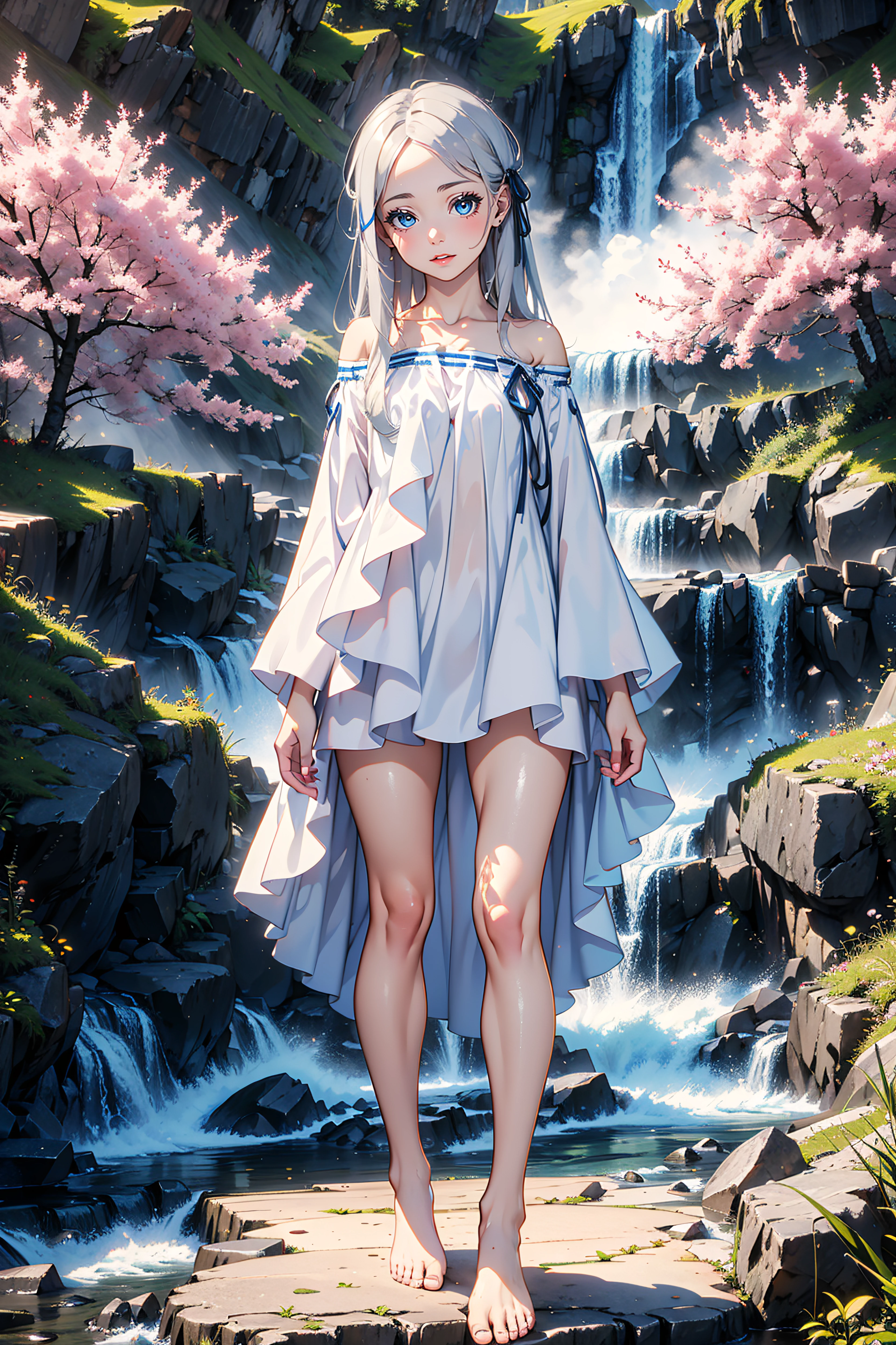 bare shoulders, barefoot, off shoulder, white dress,dress,
