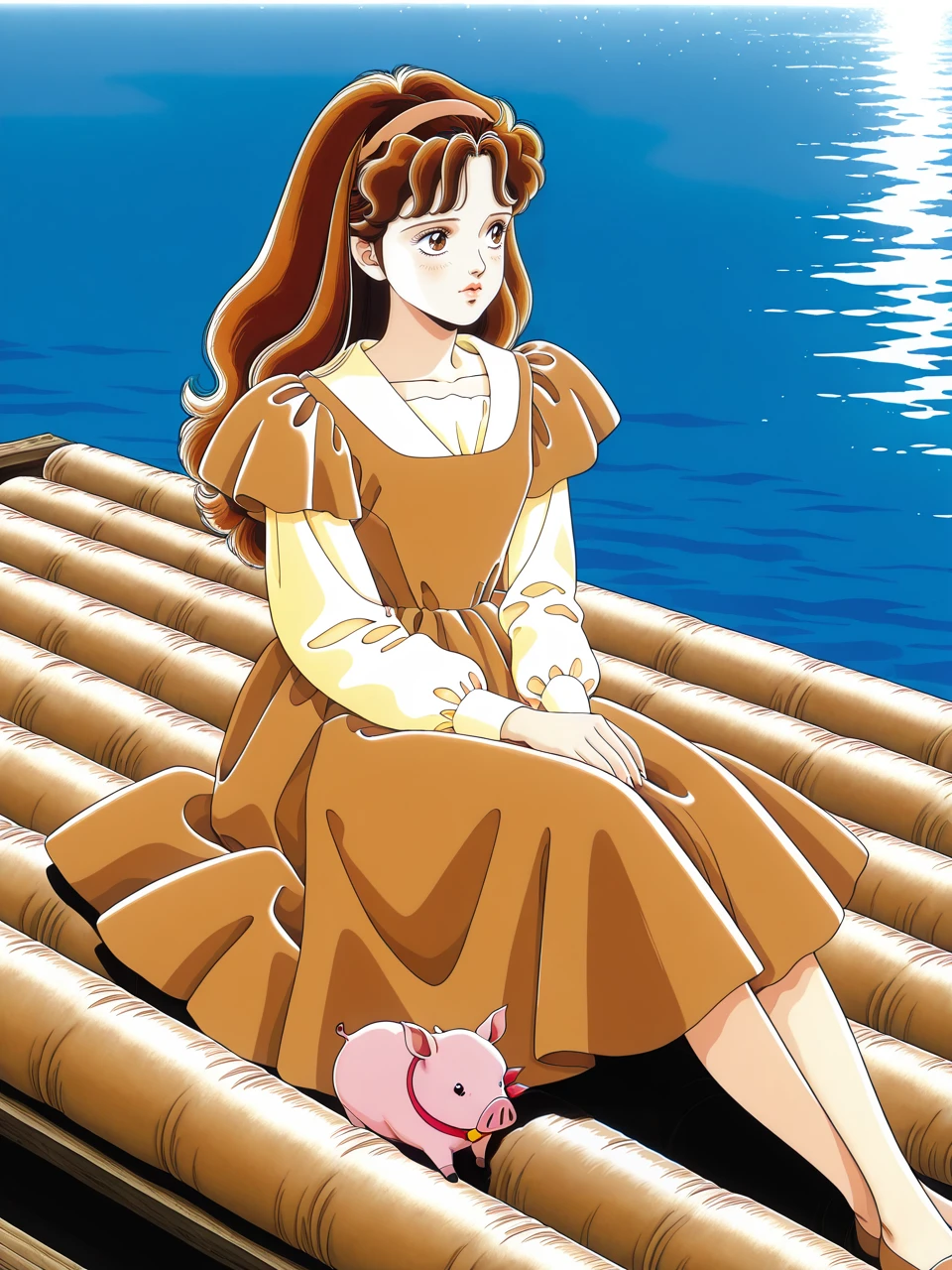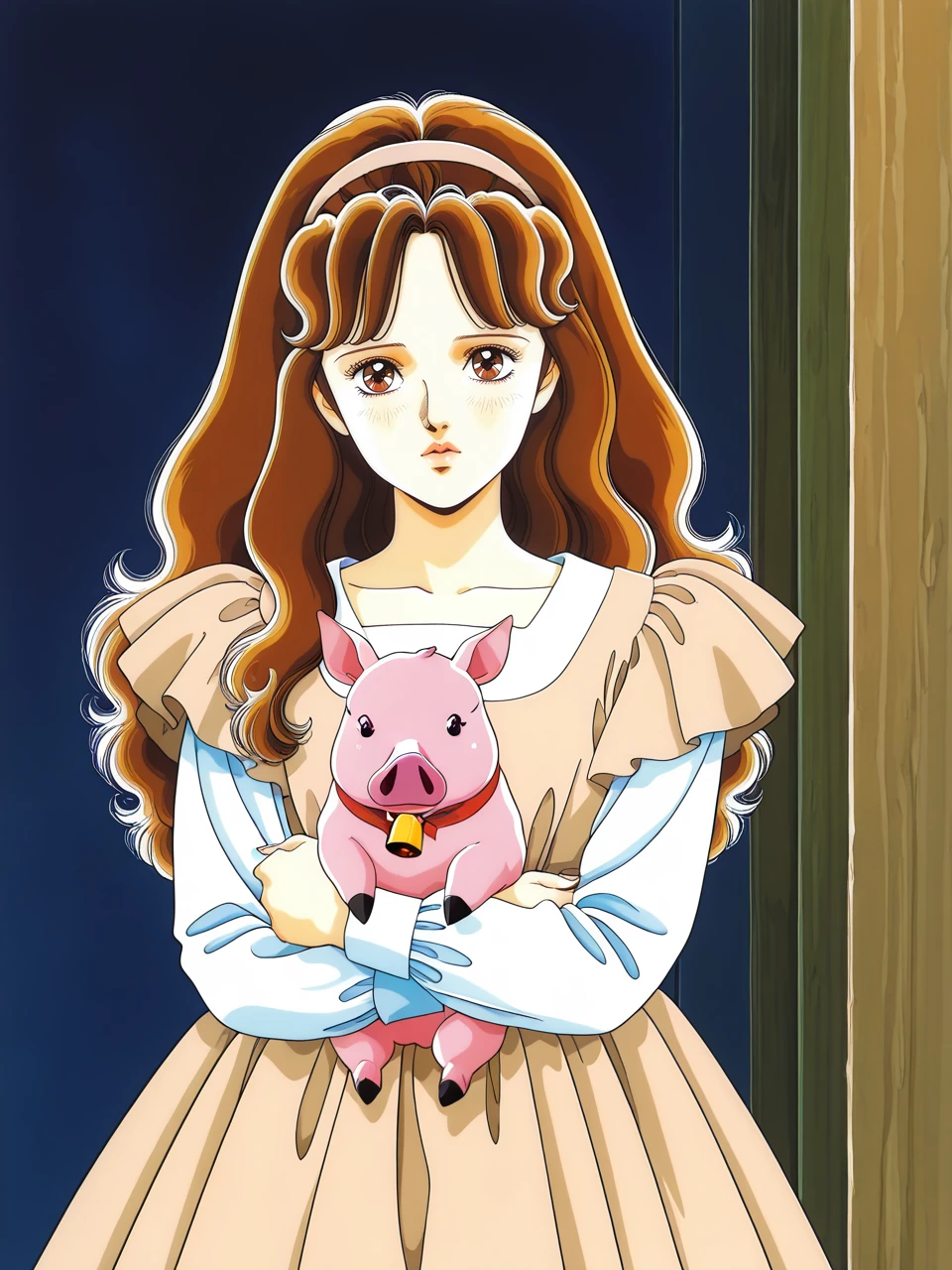 dress, puffy sleeves, long sleeves, light brown dress,