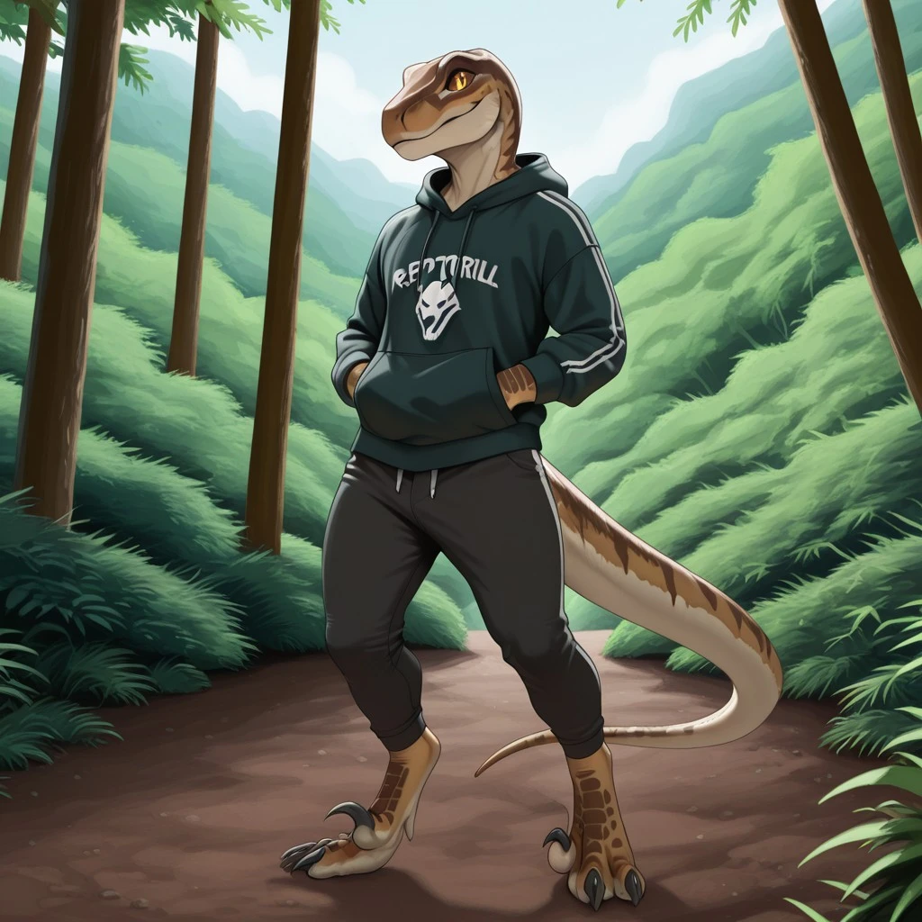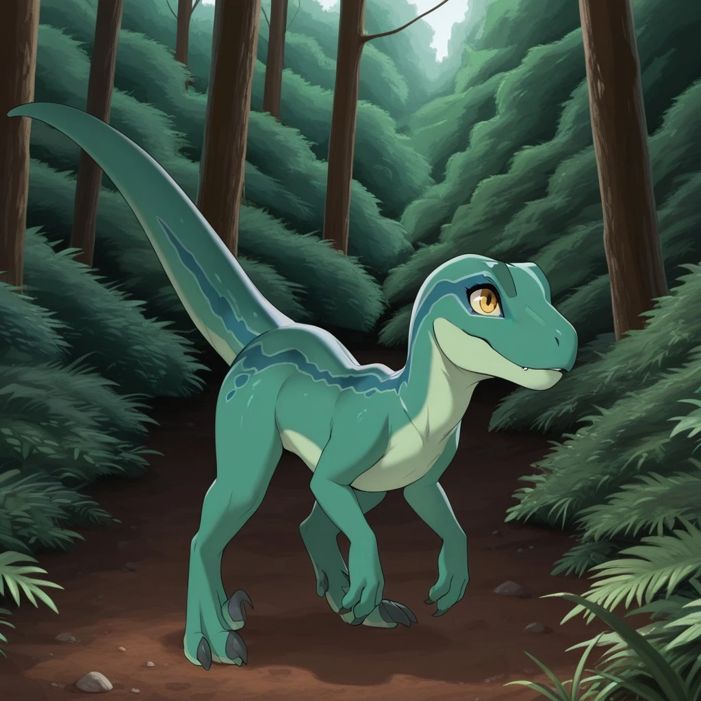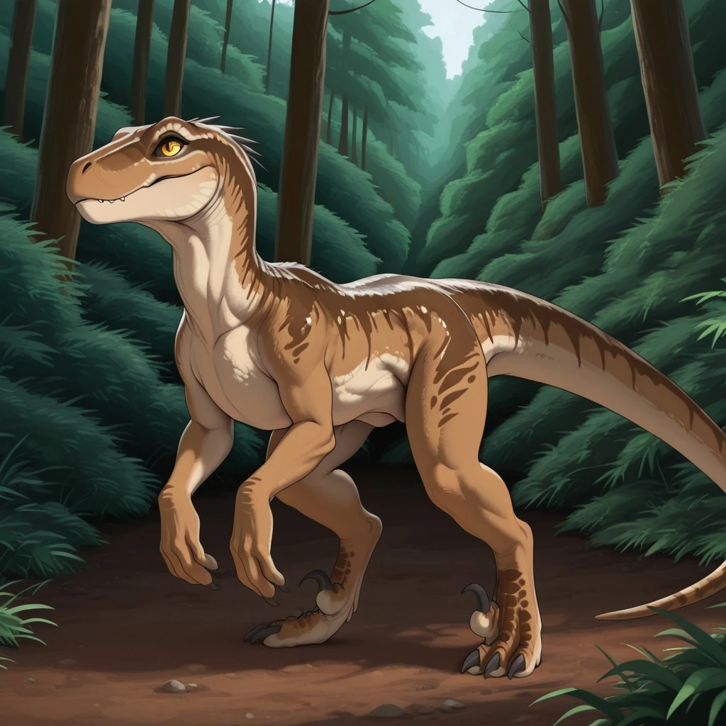 feral, vlcraptor, reptilian, scales, green eyes, slit pupils, brown skin