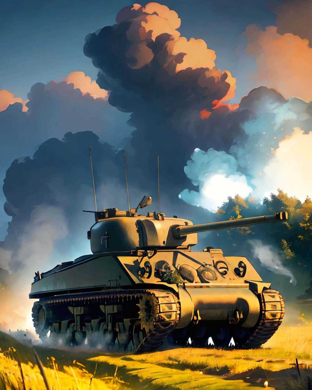 Generates images of an M4 Sherman tank. It may not be 100% accurate as vehicles can be complex. But overall it does a decent enough job to where you could inpaint or touch up.