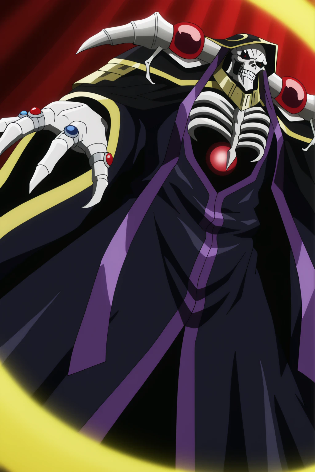 Ainz Ooal Gown,Sorcerer King outfit,hat, jewelry, glowing, ring, gem, glowing eyes, robe