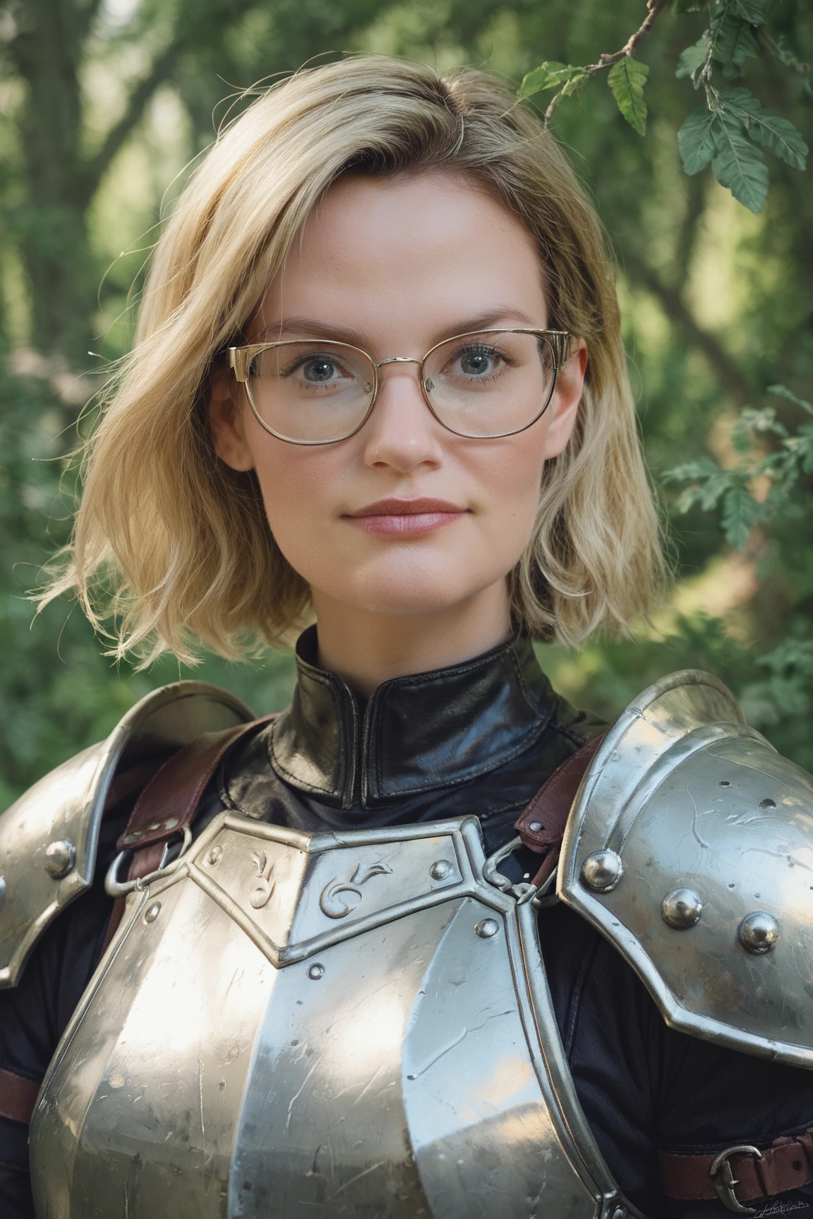 st woman,1girl, ,blonde hair,glasses, ,looking at viewer,
