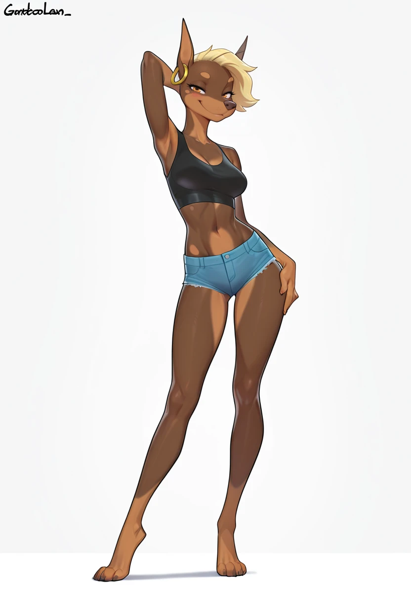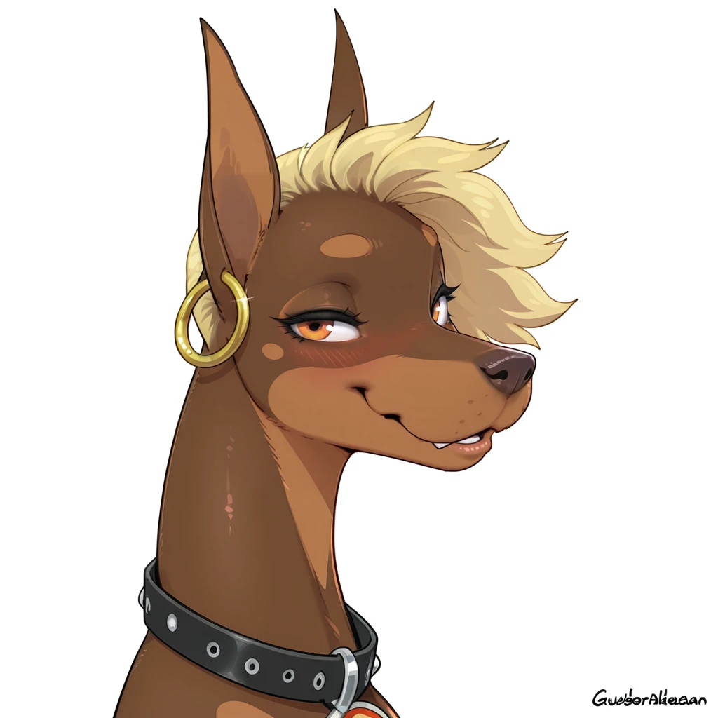 Pepper(halbean), dobermann, feral, feral female, orange eyes, ear ring