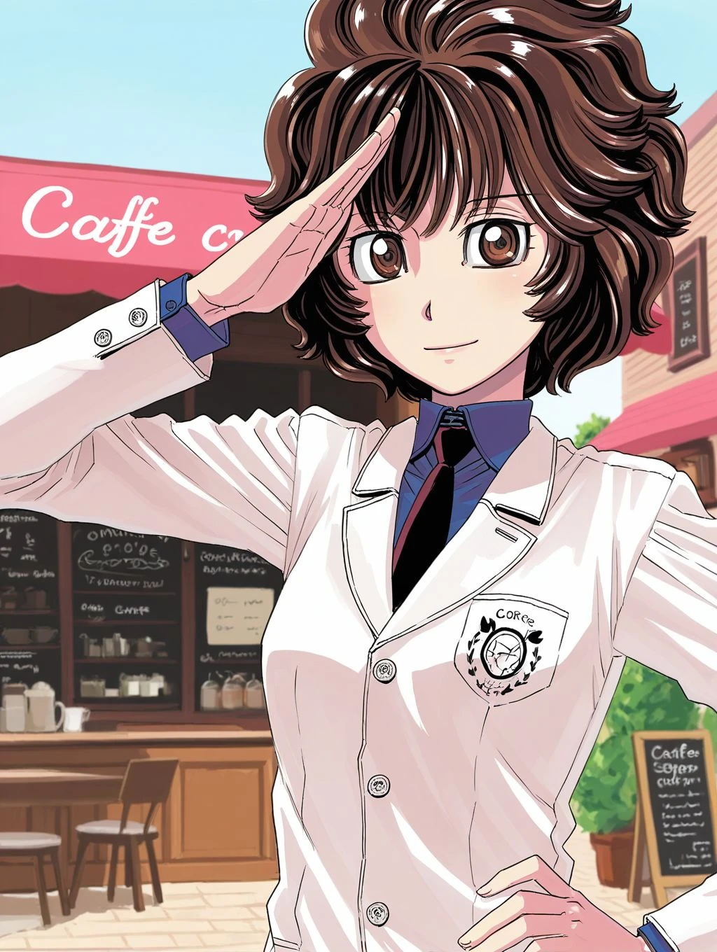 Trigger word: toshimarnie, short hair, messy hair,white jacket,collared shirt,necktie, pleated skirt