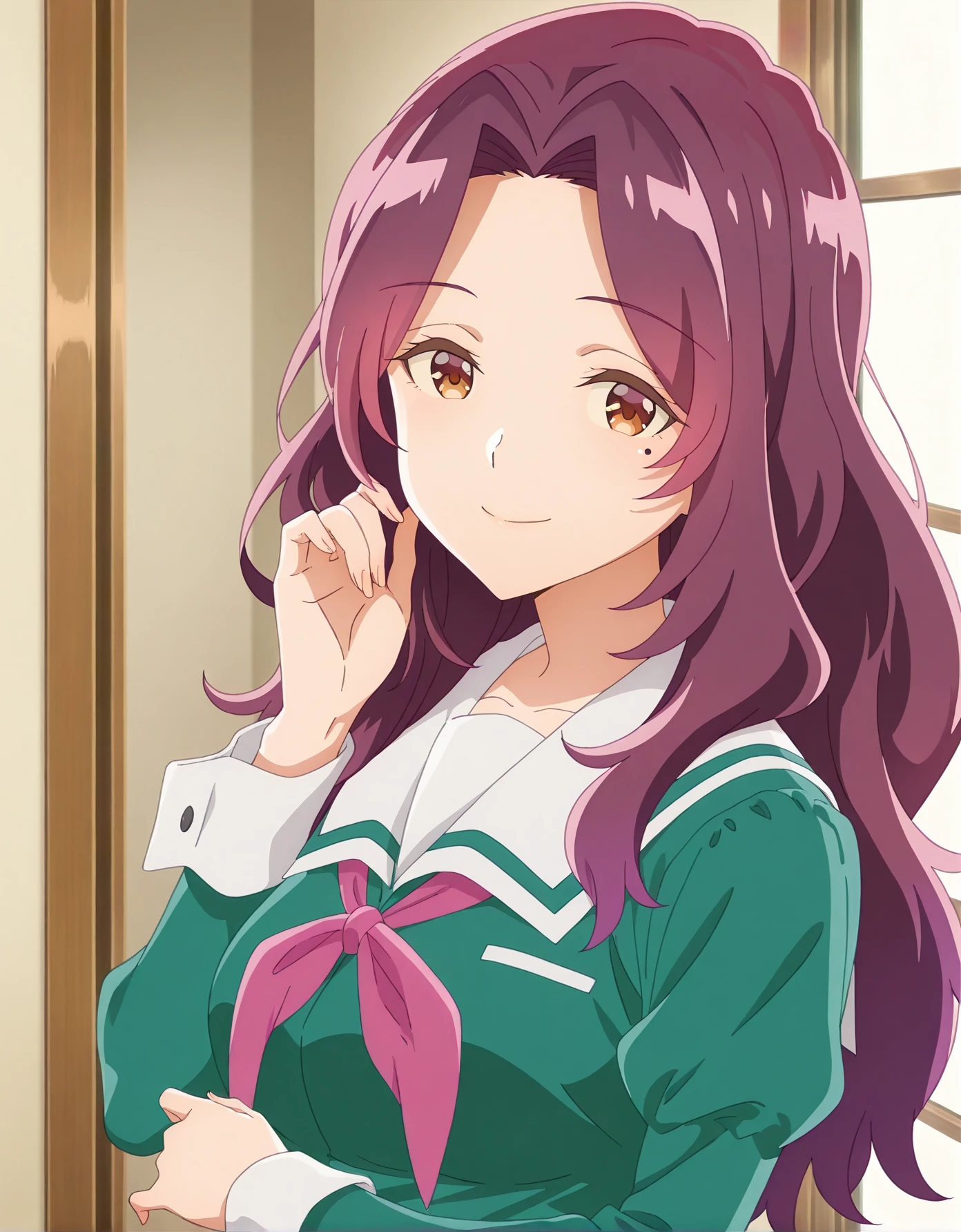 ymjyoko, long hair, purple hair, brown eyes, (mole under eye:0.6),