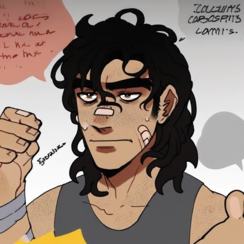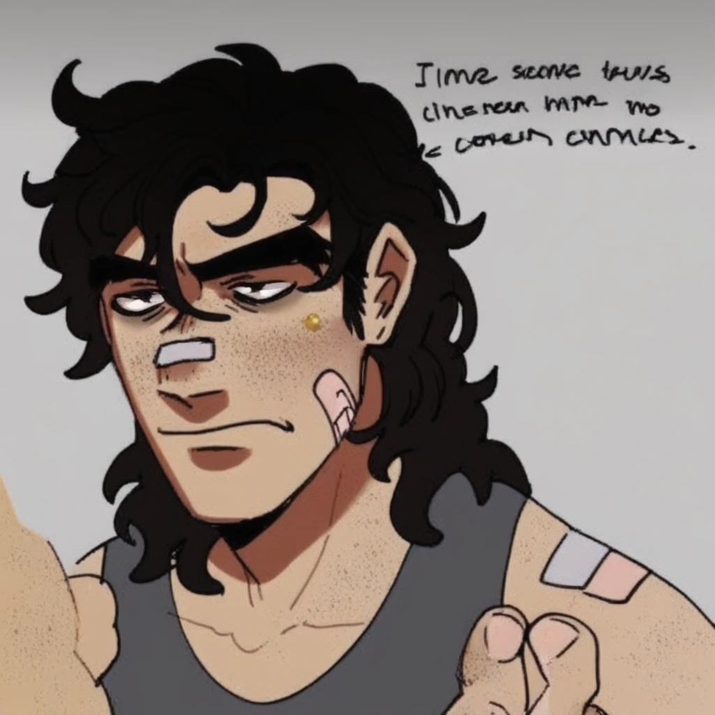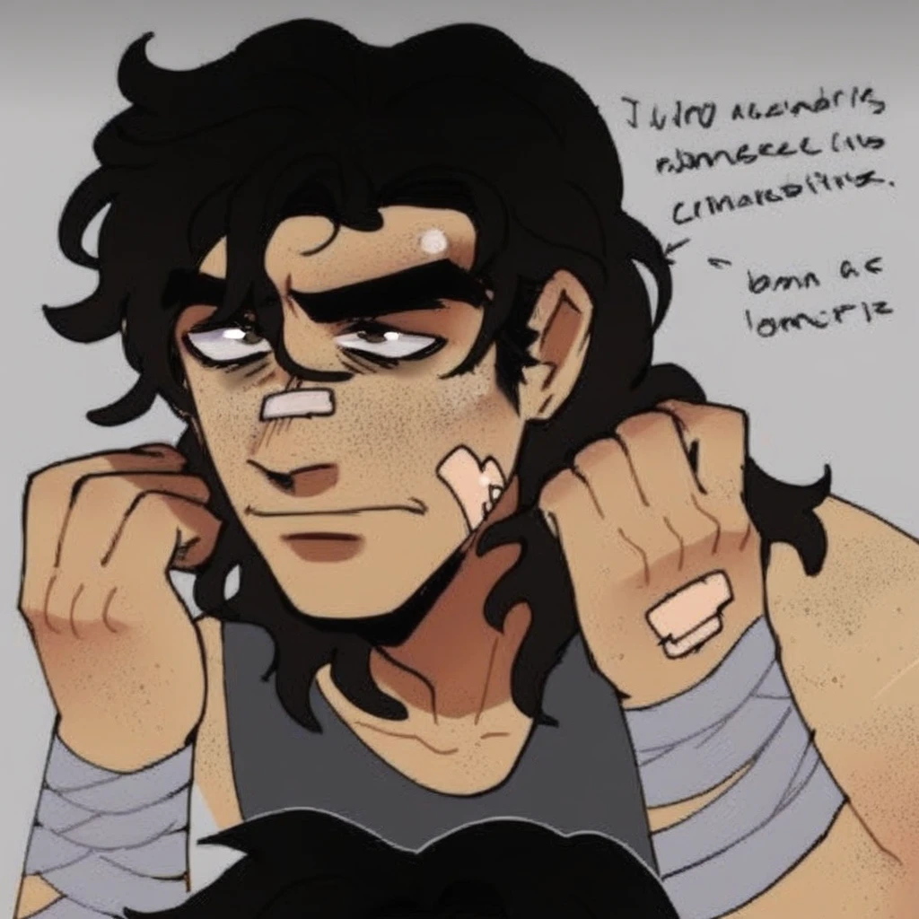 michael, dark hair, messy hair, thick eyebrows, brown eyes, freckles, bandaids, male