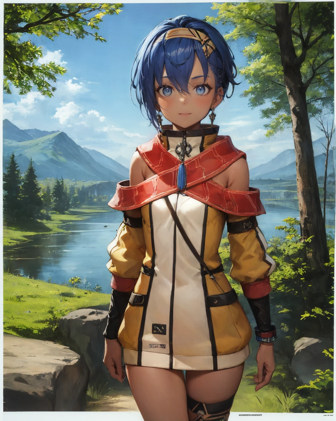 <lora:FeriV2-000013:1>, Feri Al-Fayed, blue eyes, blue hair, short hair, dark-skinned female, small breasts,
