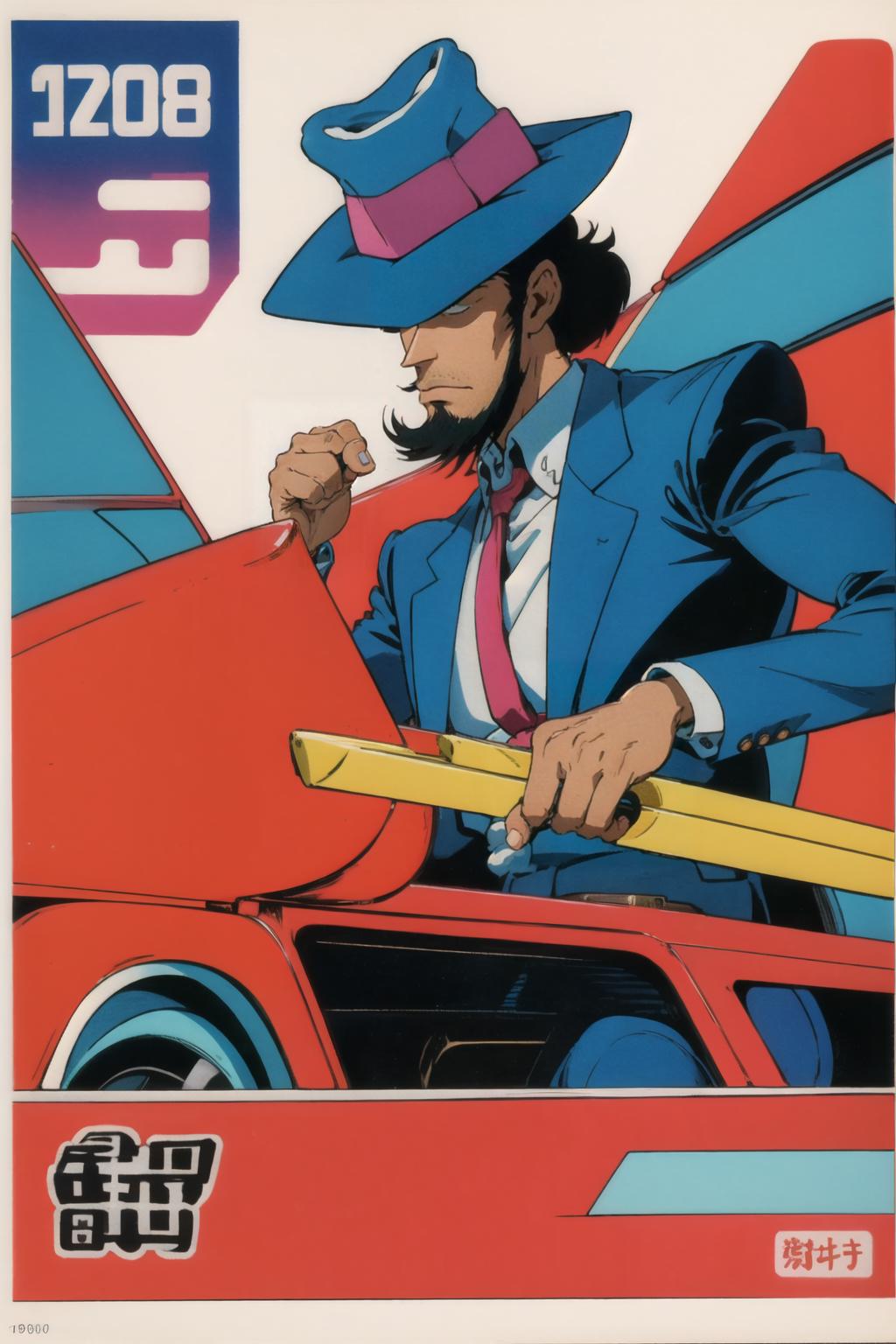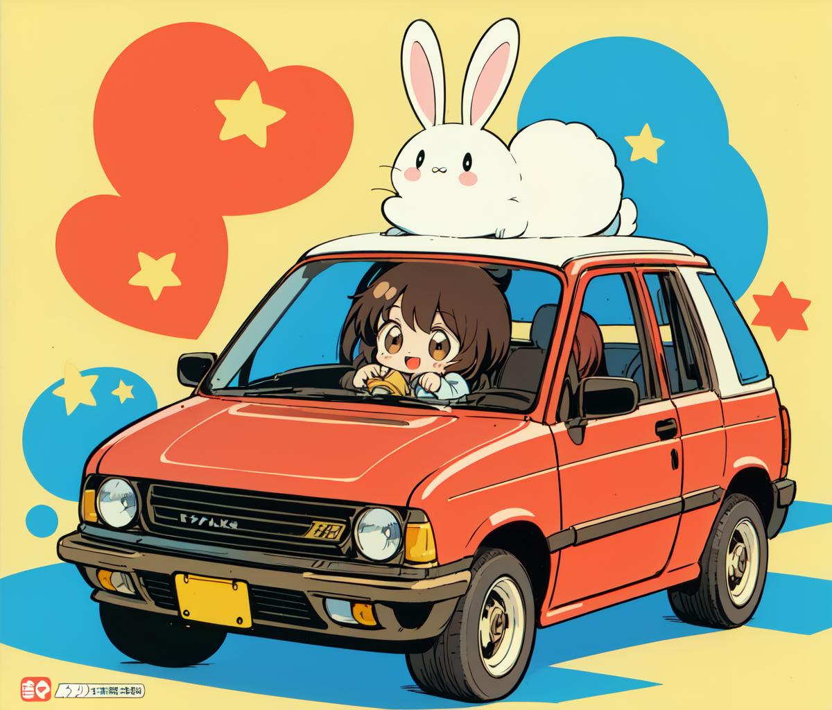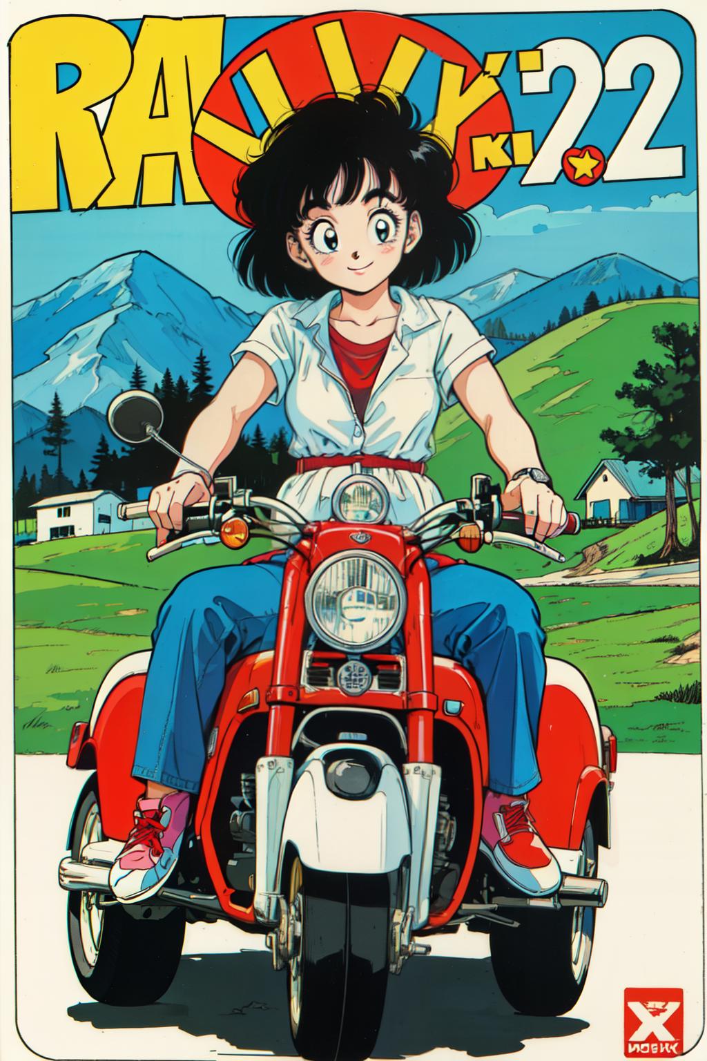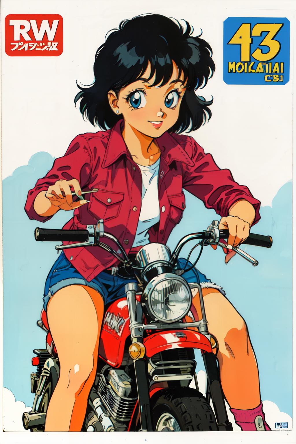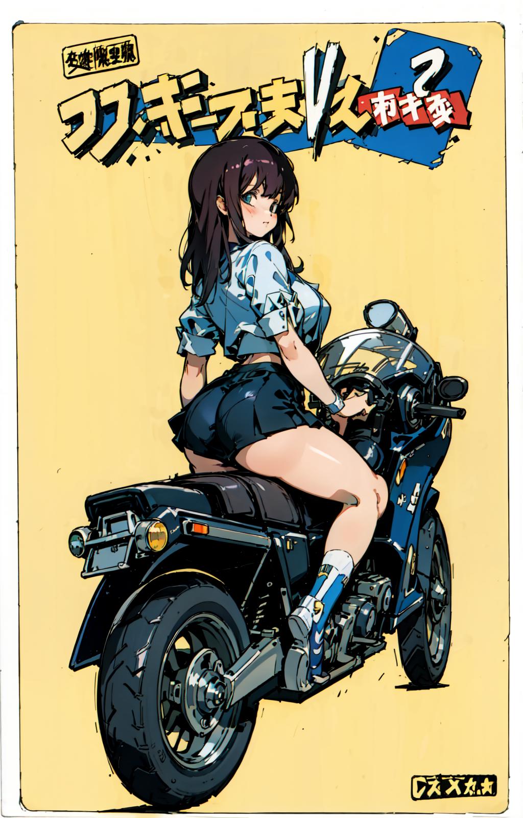 1980s \(style\),retro artstyle,toy box art,logo,riding ground vehicle,