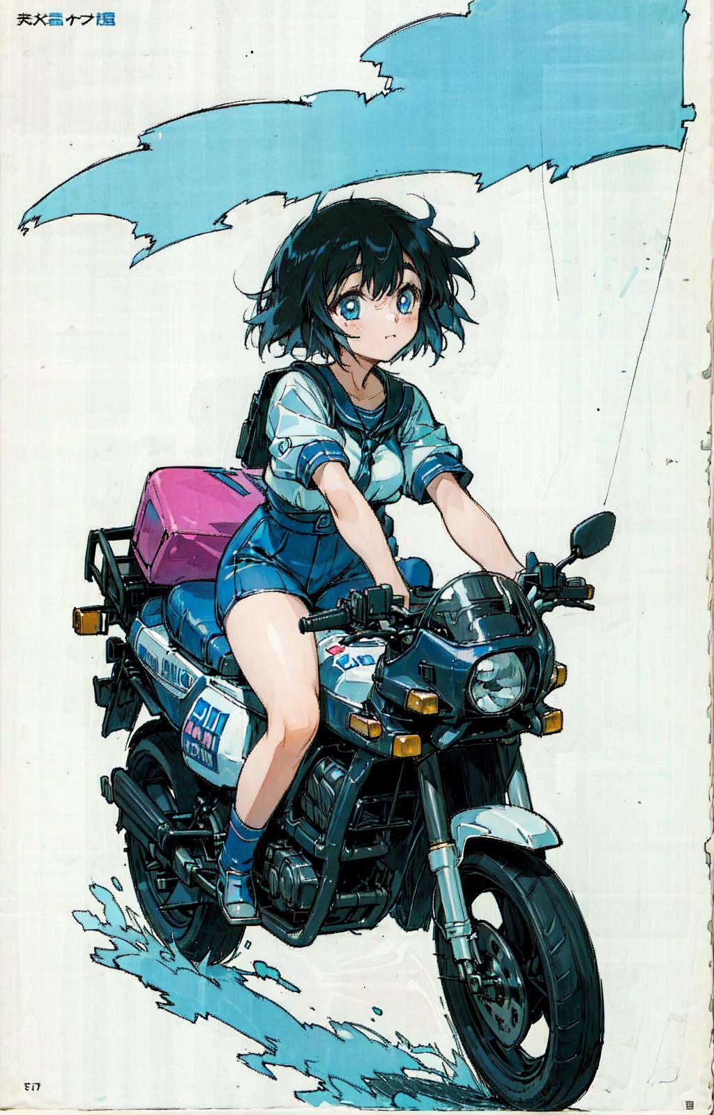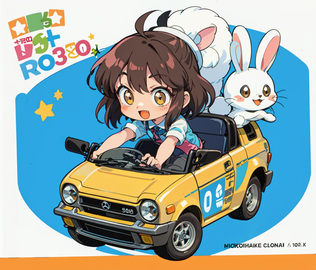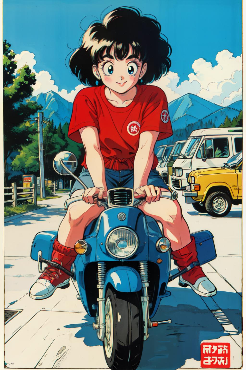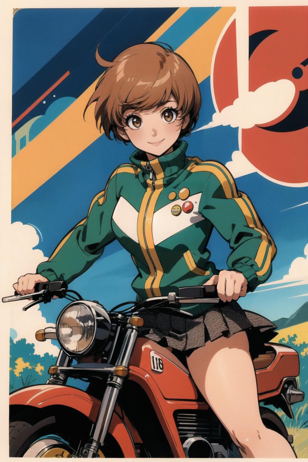 1980s \(style\),retro artstyle,toy box art,logo,riding ground vehicle,