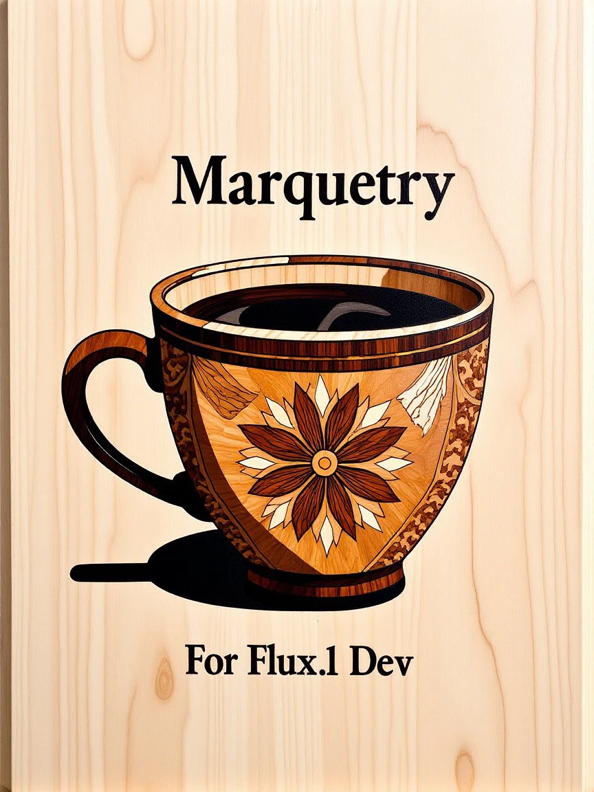 This LoRA will work without a trigger to produce a kind of simplified marquetry image, but a bit cartoon’y. Also, it will fail for some generations - particularly people.