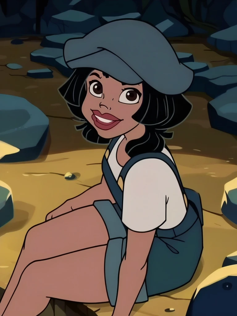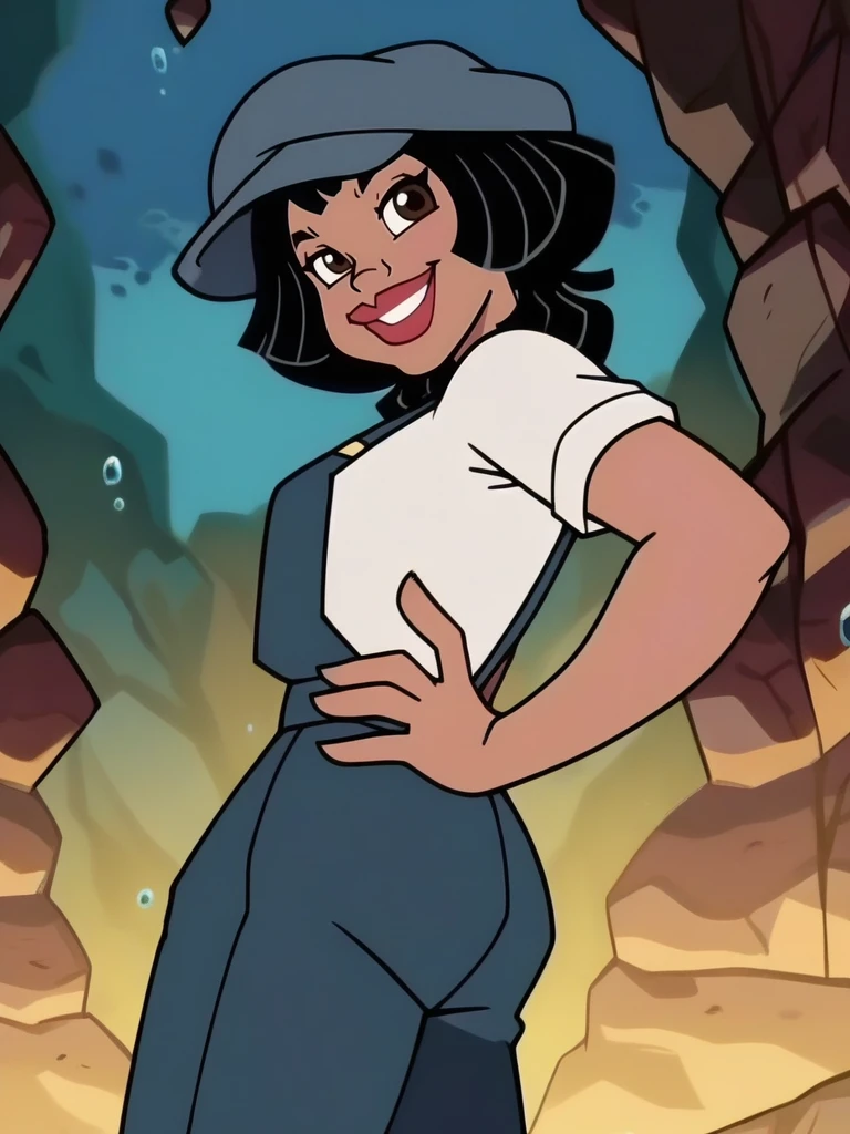 Use the activation word "AudreyXLP" "black hair, short hair, hat, blue overalls, white shirt, lipstick, dark skin" Improve with: "Cartoon".