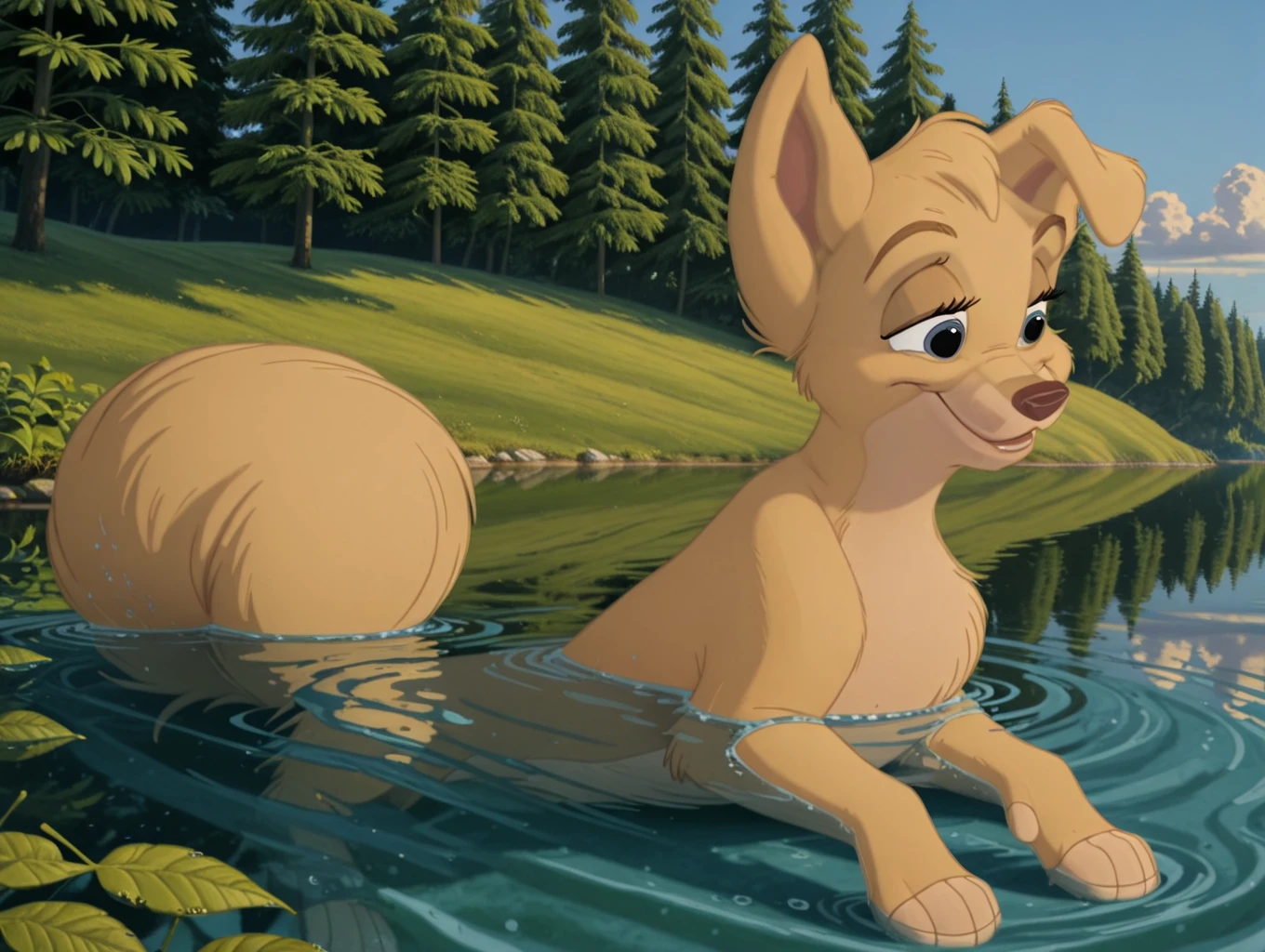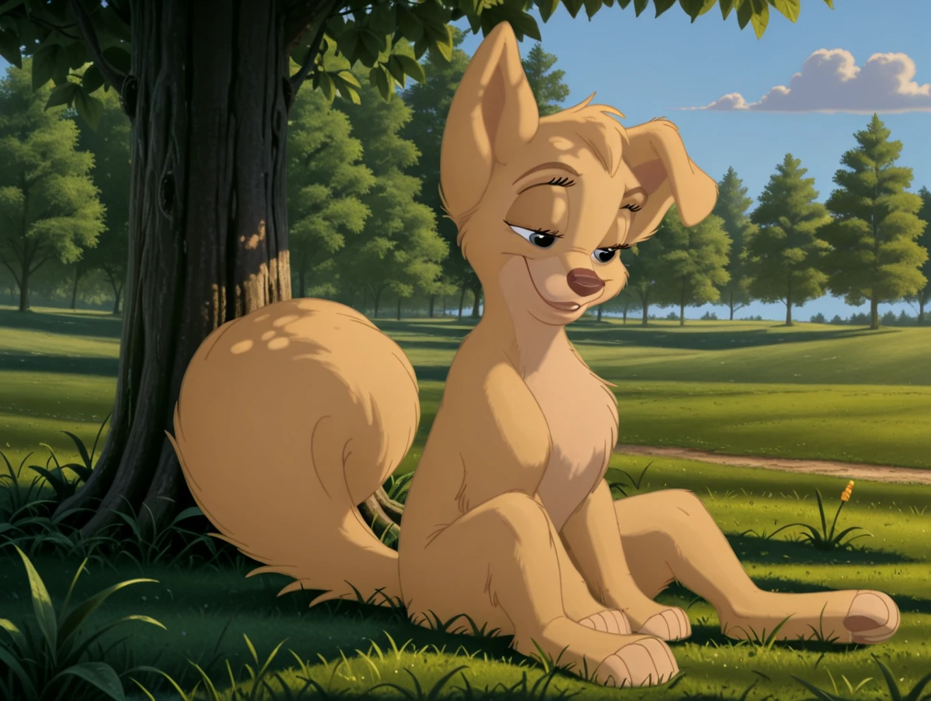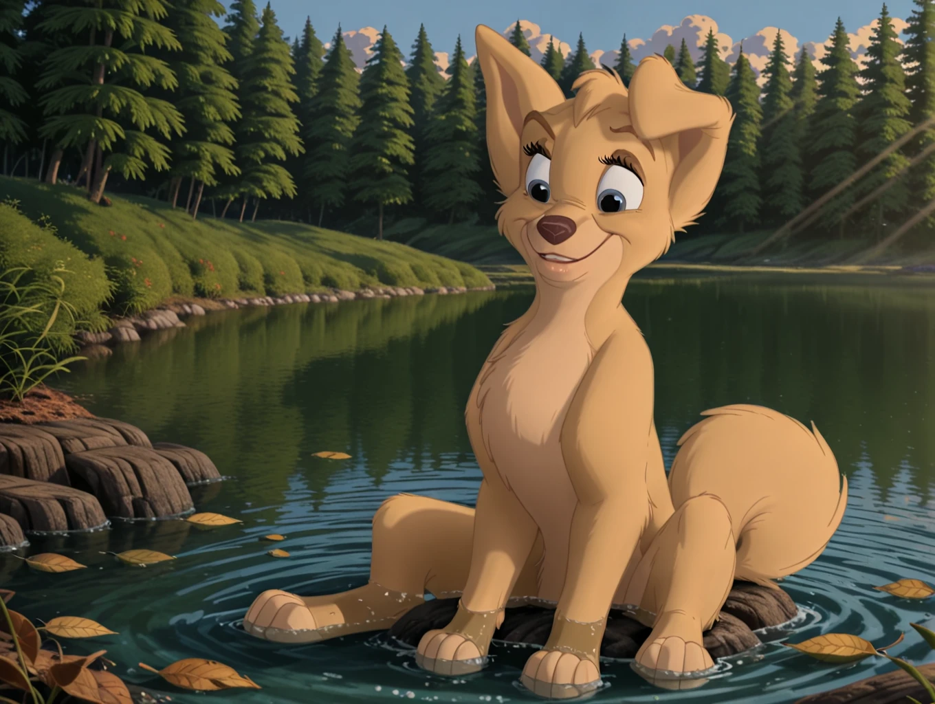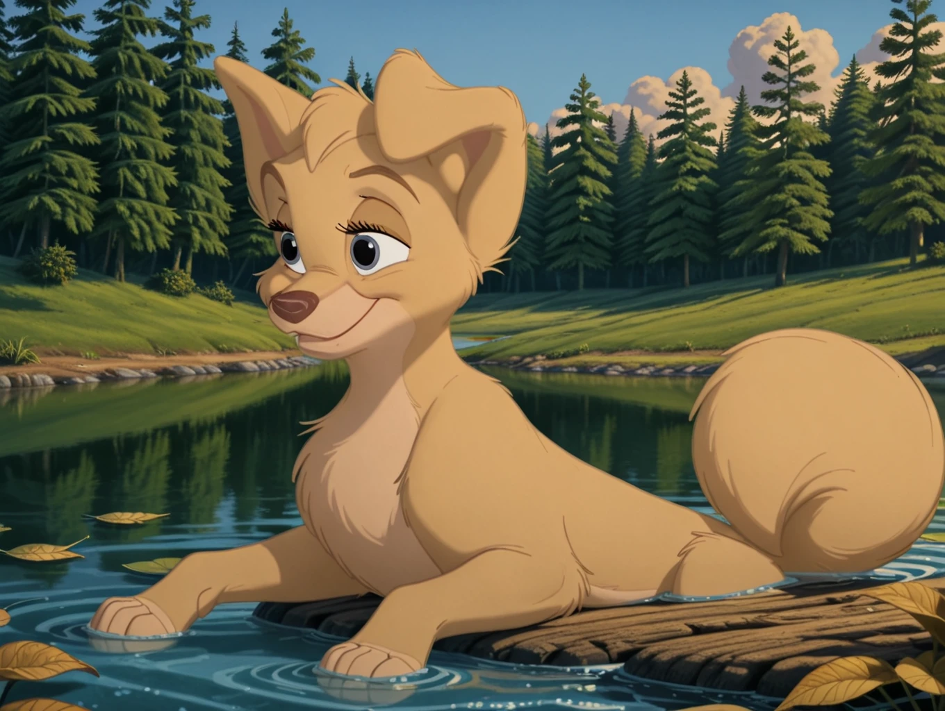 angel, 1dog, dog, puppy, pup, disney, yellow fur, body fur, blue eyes, feral, female, folded left ear,