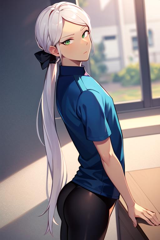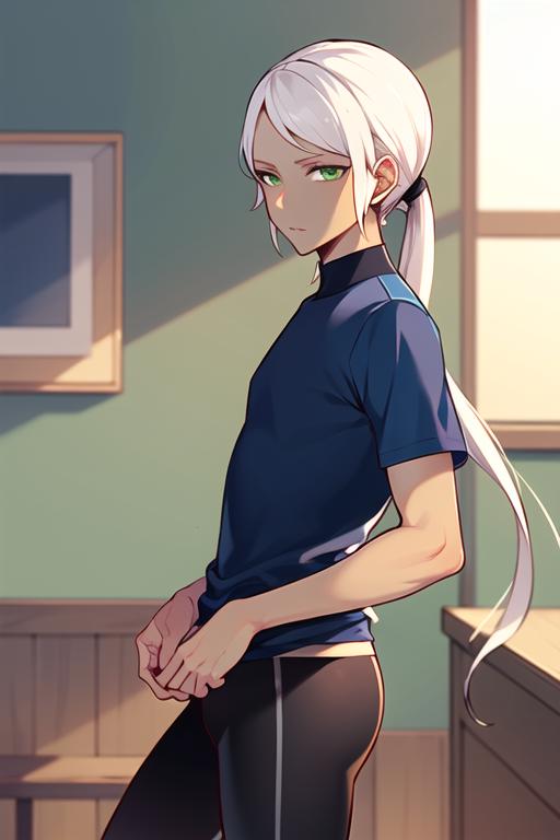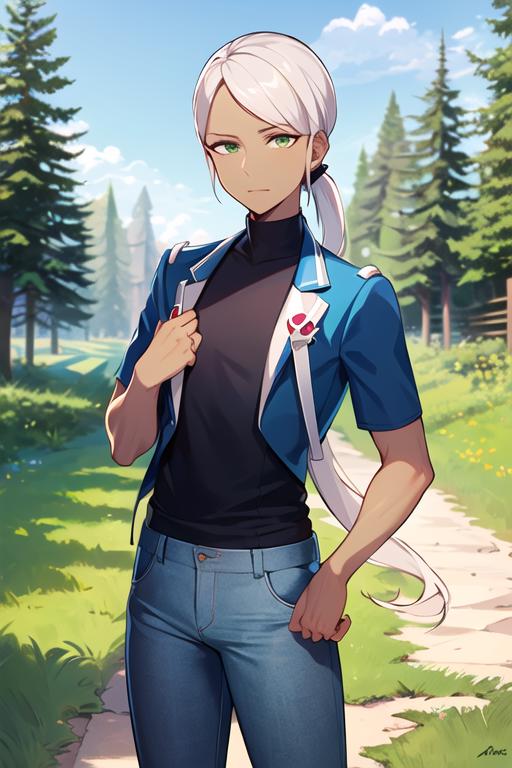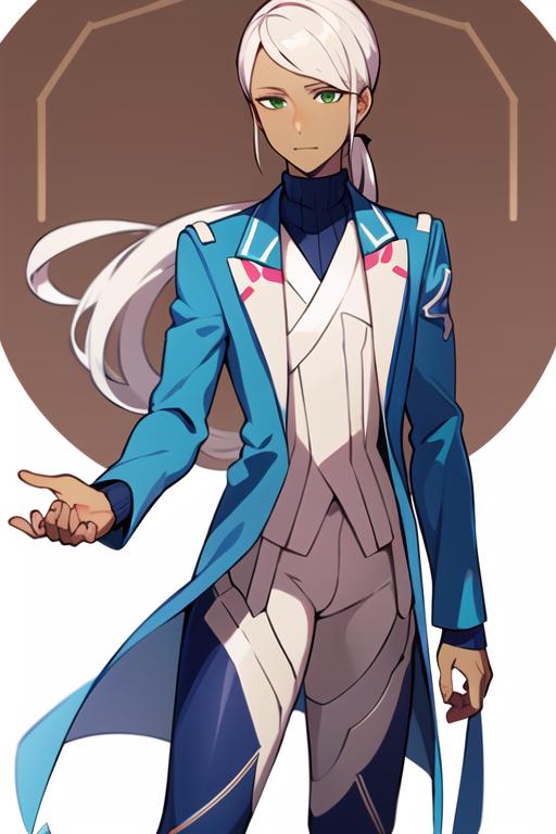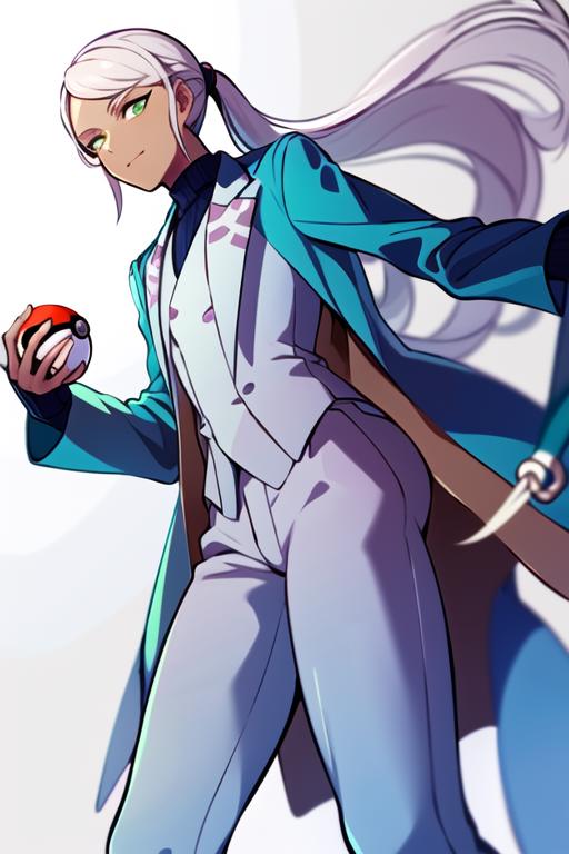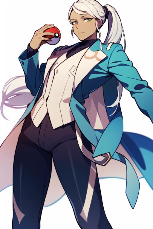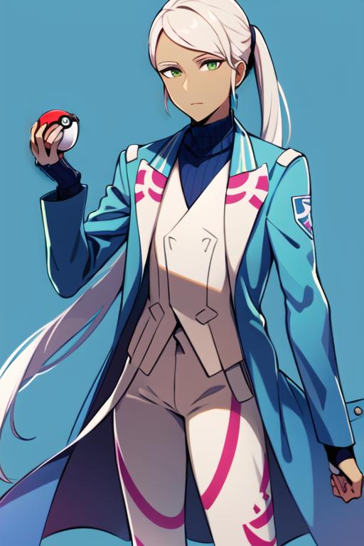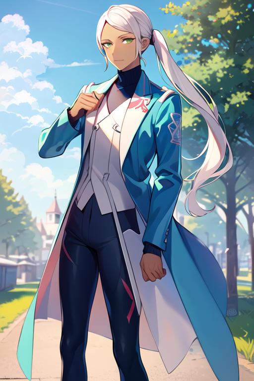 blanche_pgo, long hair, ponytail, white hair, green eyes, coatWould you like to have a model of a character, object, or concept? Contact me; I can assist you.