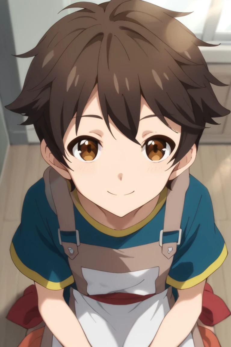 apron,blue shirt,