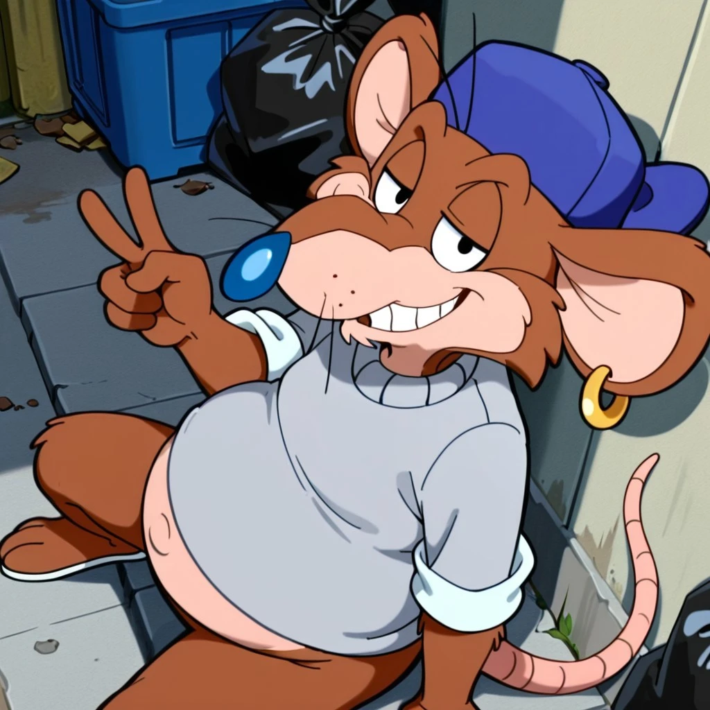 Tags: rat, male, brown fur, blue nose, furry, furry male, two-tone fur, whiskers, animal ears, black eyes, tail,