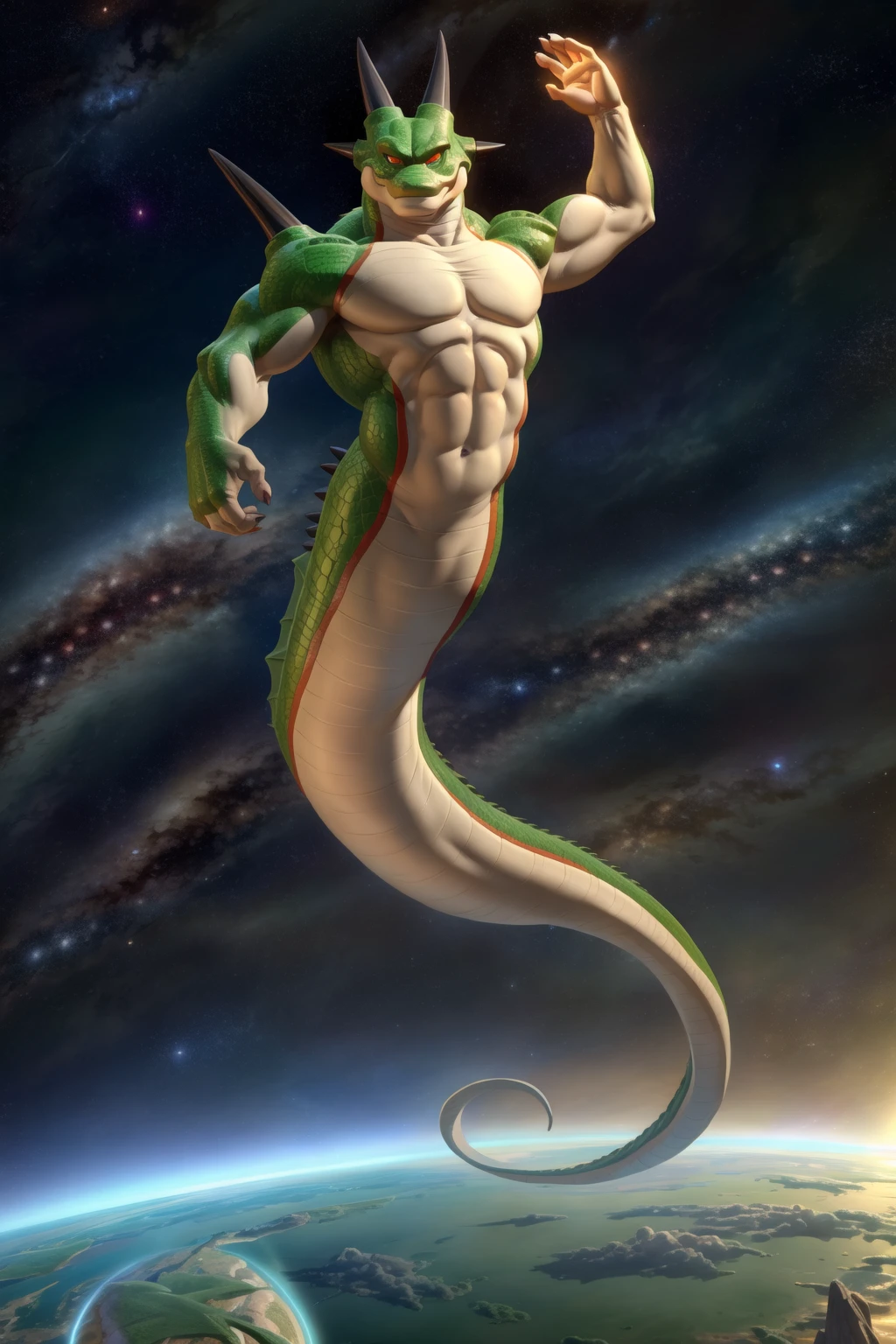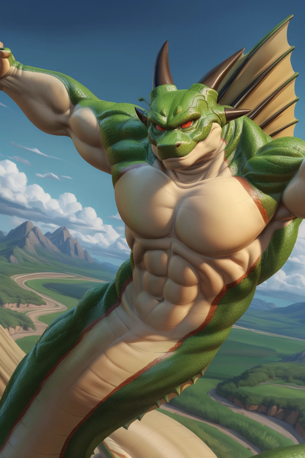 Reinforcement Prompts: "spikes, muscular male, red eyes" and "half-snake, draconcopode" (for legless)