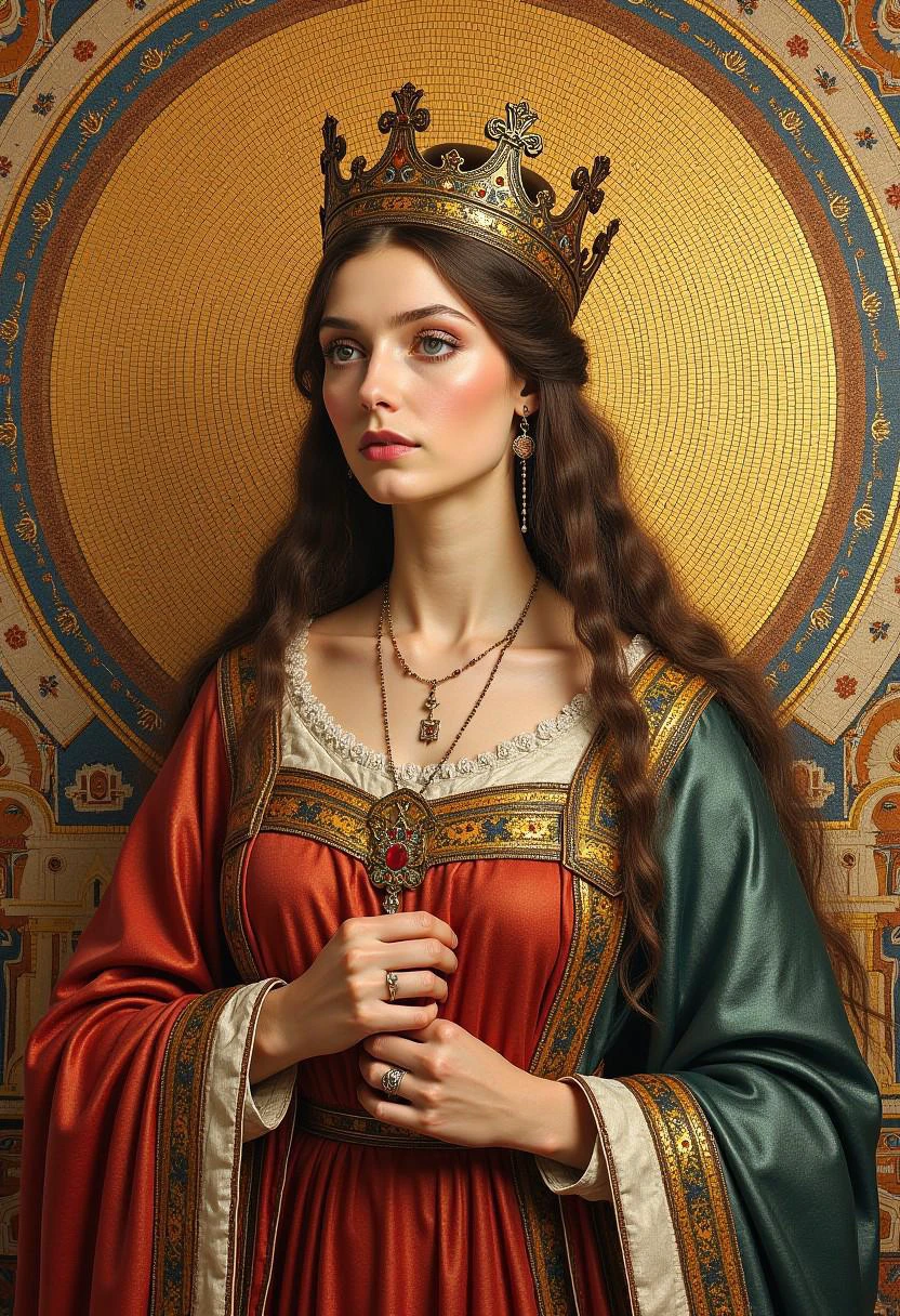 If you want to have a strong Byzantine look, use "Byzantine mosaic" or "Byzantine style" in your prompt.