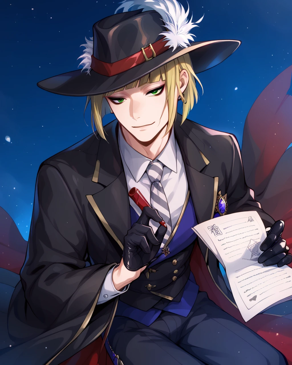 School uniform(制服) : school uniform,striped necktie, gloves, necktie, hat, black gloves, vest, jacket, striped, shirt,