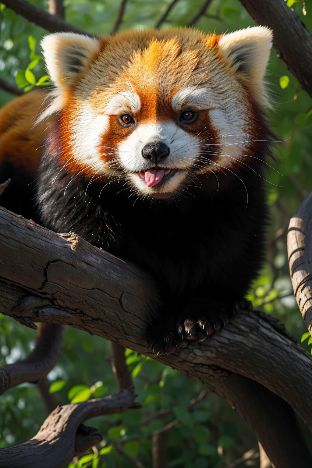Recommend prompt: <lora:Redpandav01:0.7>,no human, redpanda, masterpiece, best quality, photo realistic,whiskers, animal, plant, realistic, animal focus,sunlight,blurry,traditional media, forest.tree,cute,half body,close up,lying,animal,animal tongue