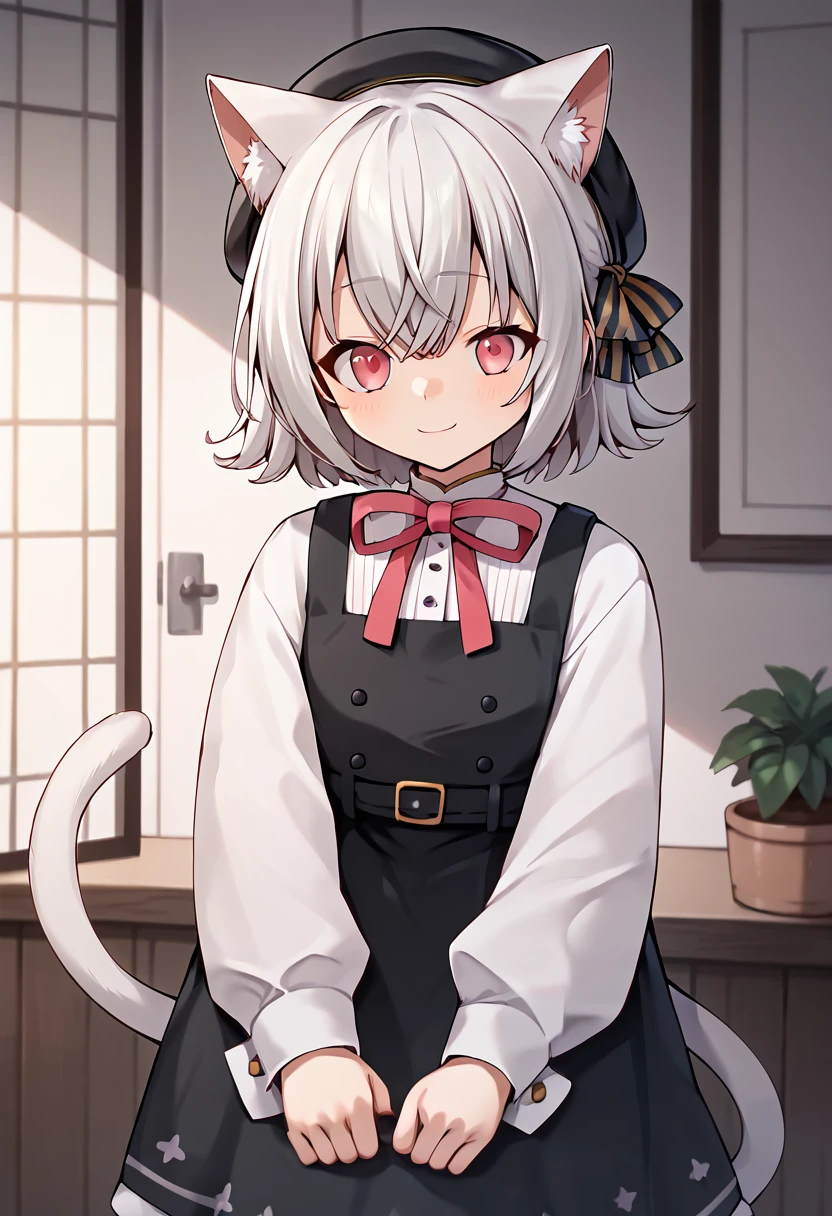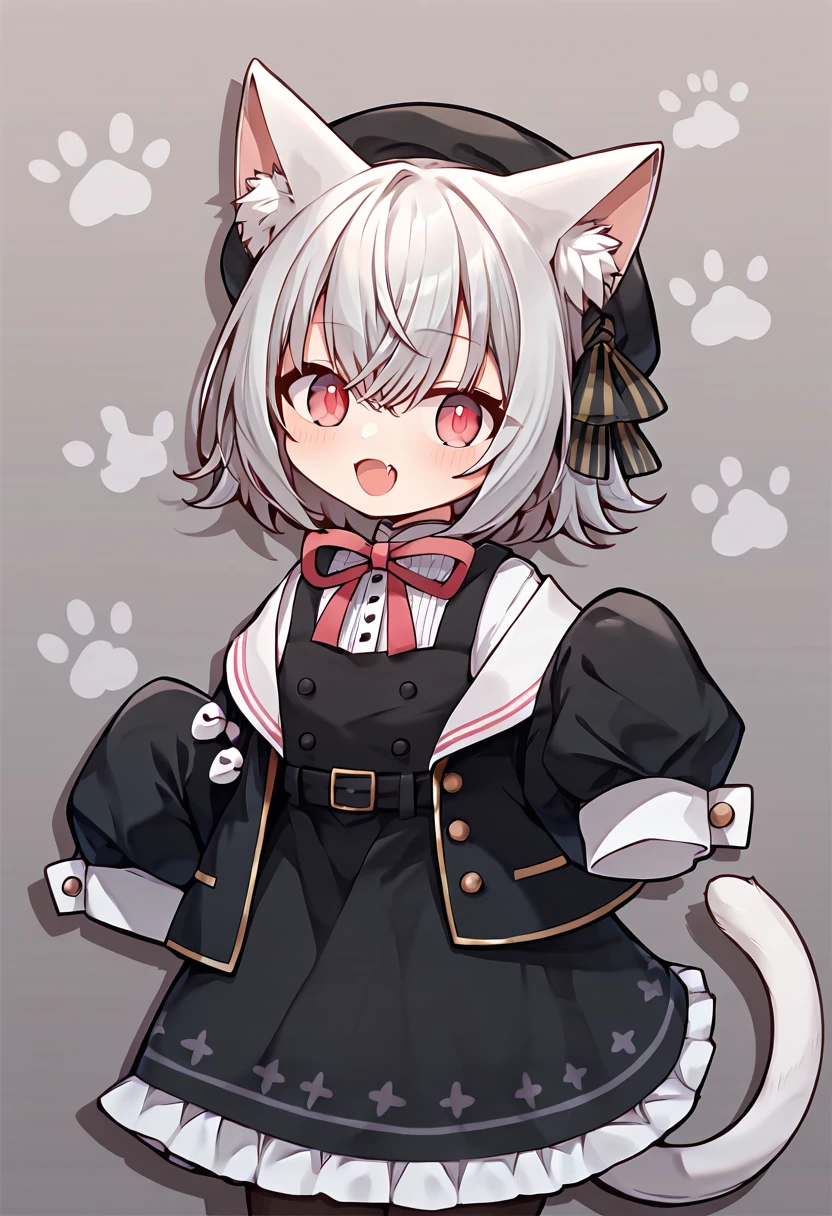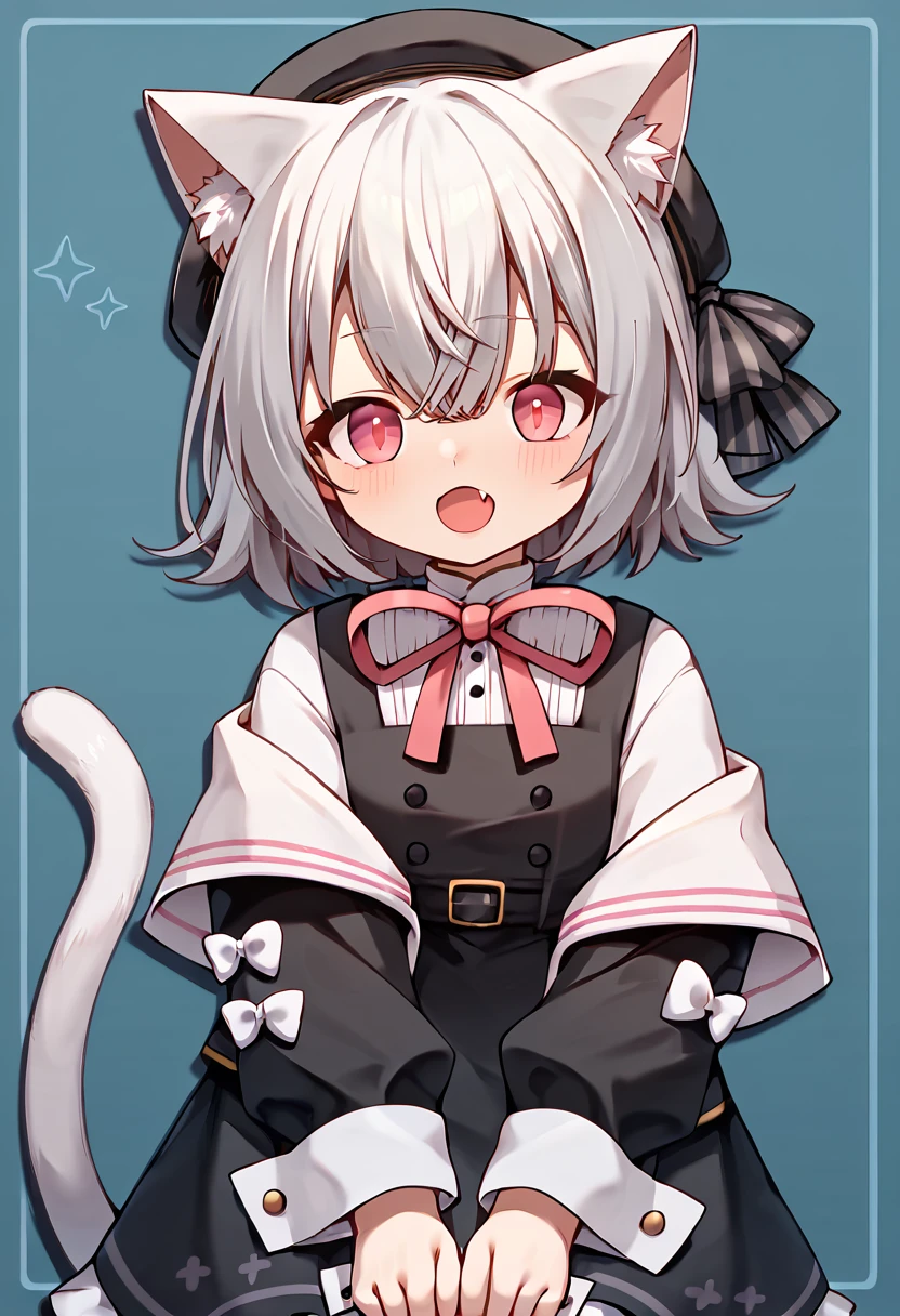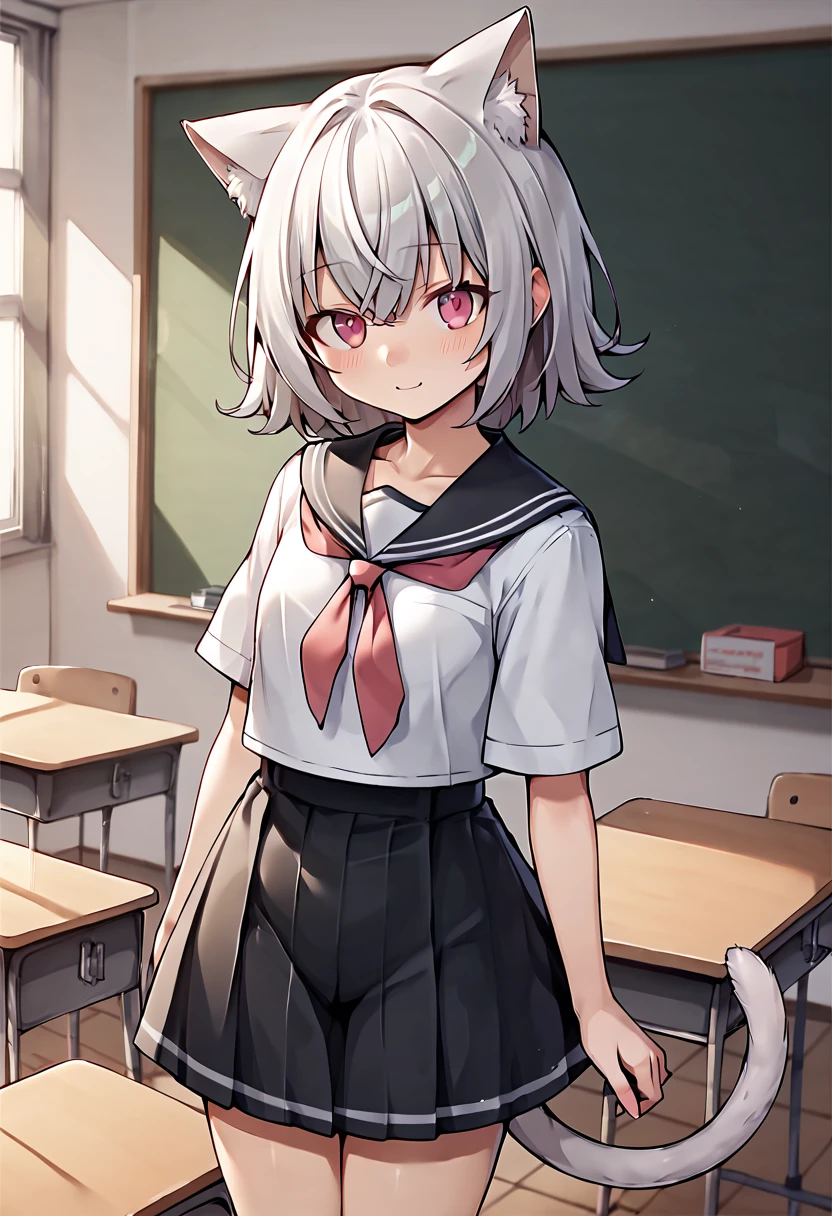 sayo \(voicevox\), grey hair, cat ears, pink eyes, cat tail,