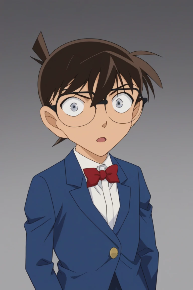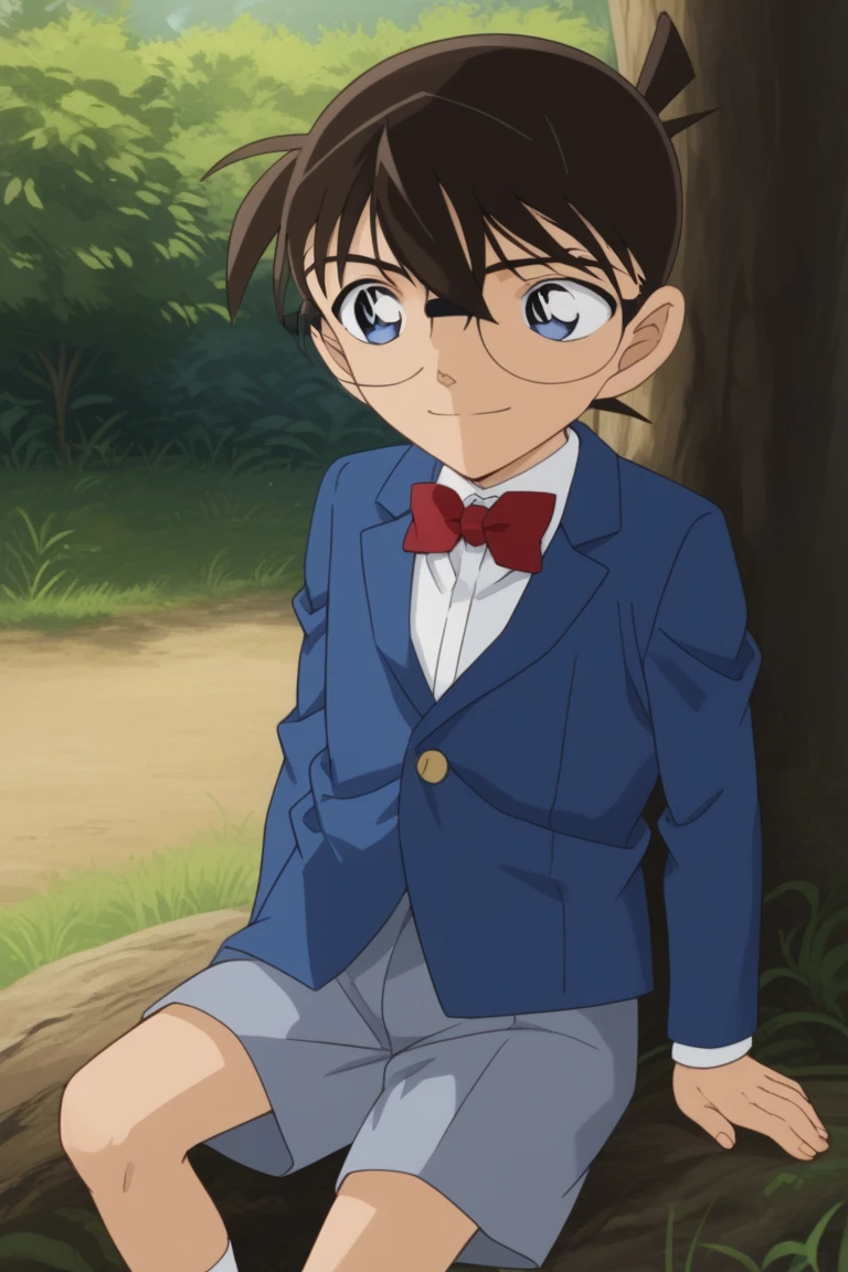 *blue jacket, white shirt, red bowtie, blue shorts, red footwear