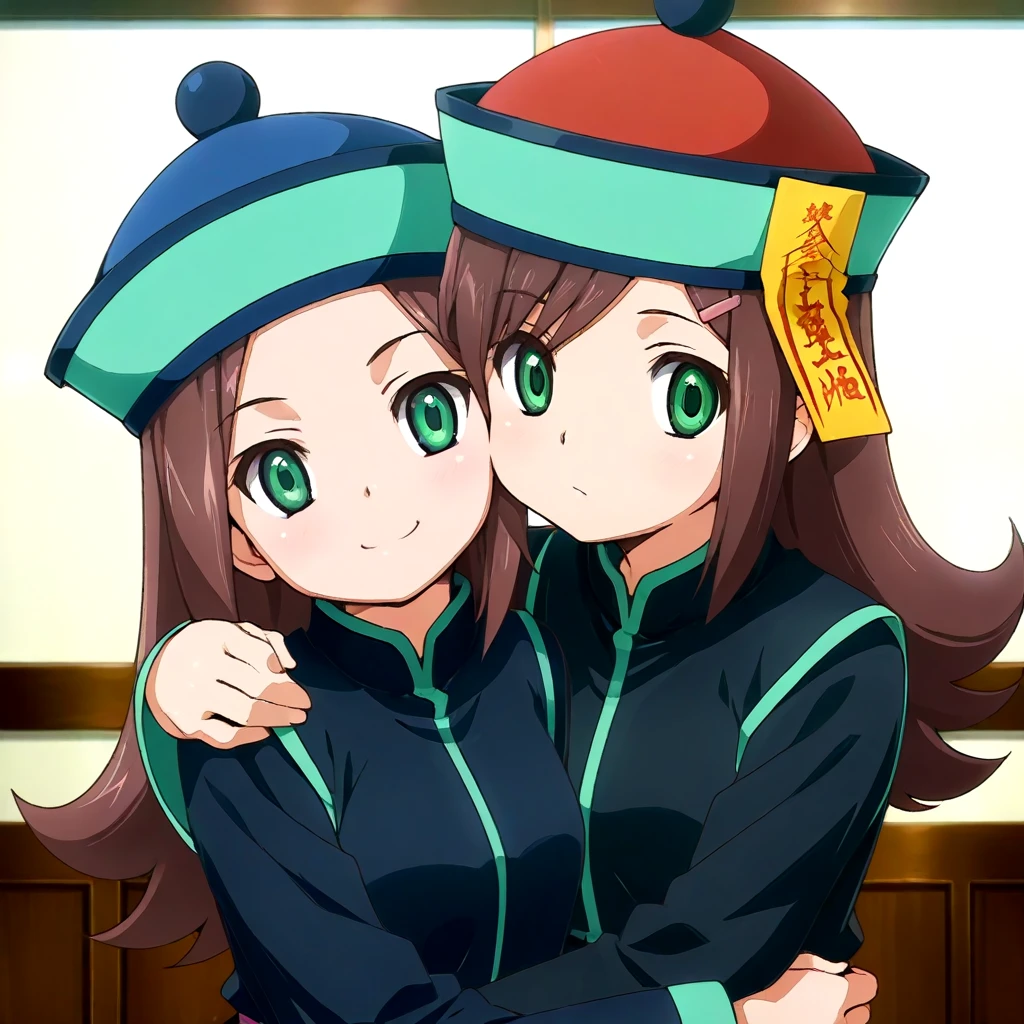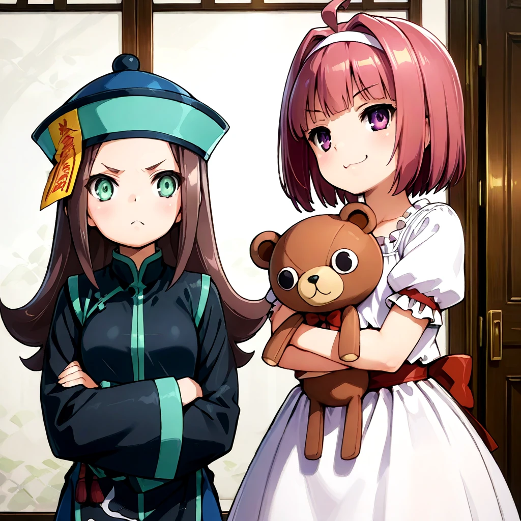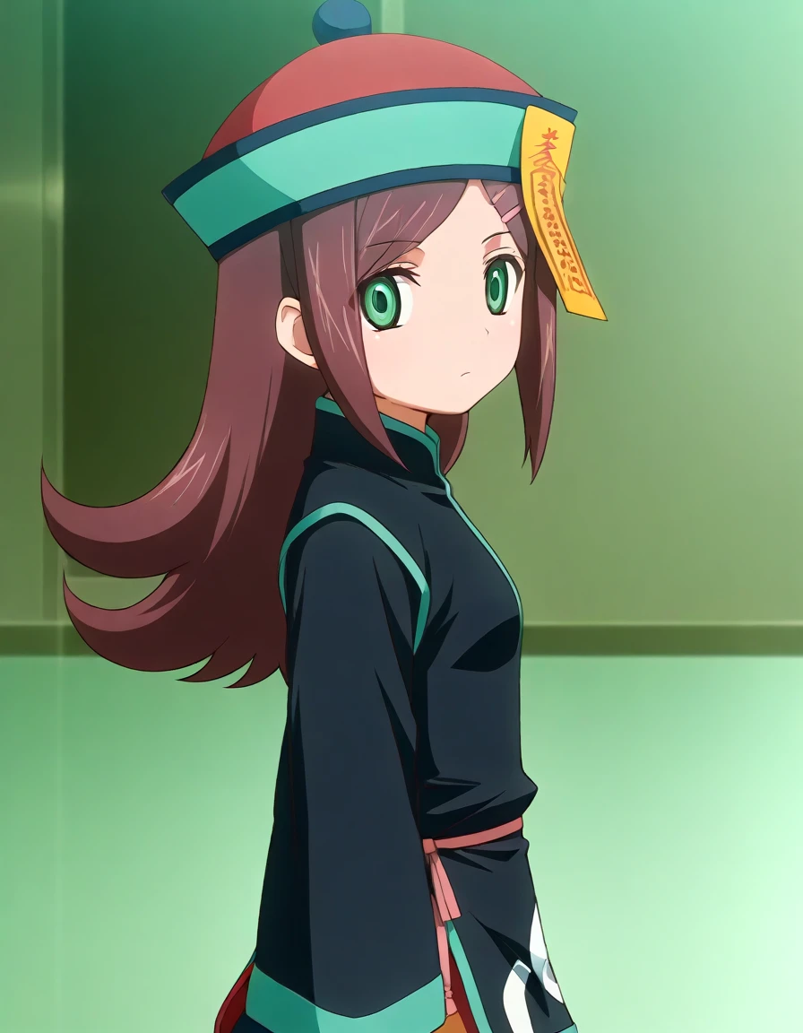 anan, red hat, hairclip, chinese clothes, ofuda, skirt