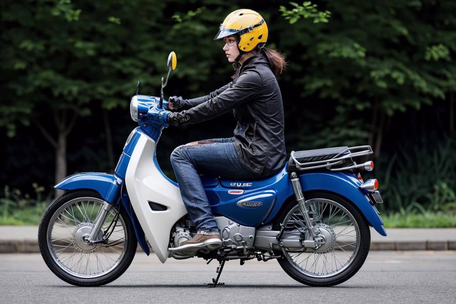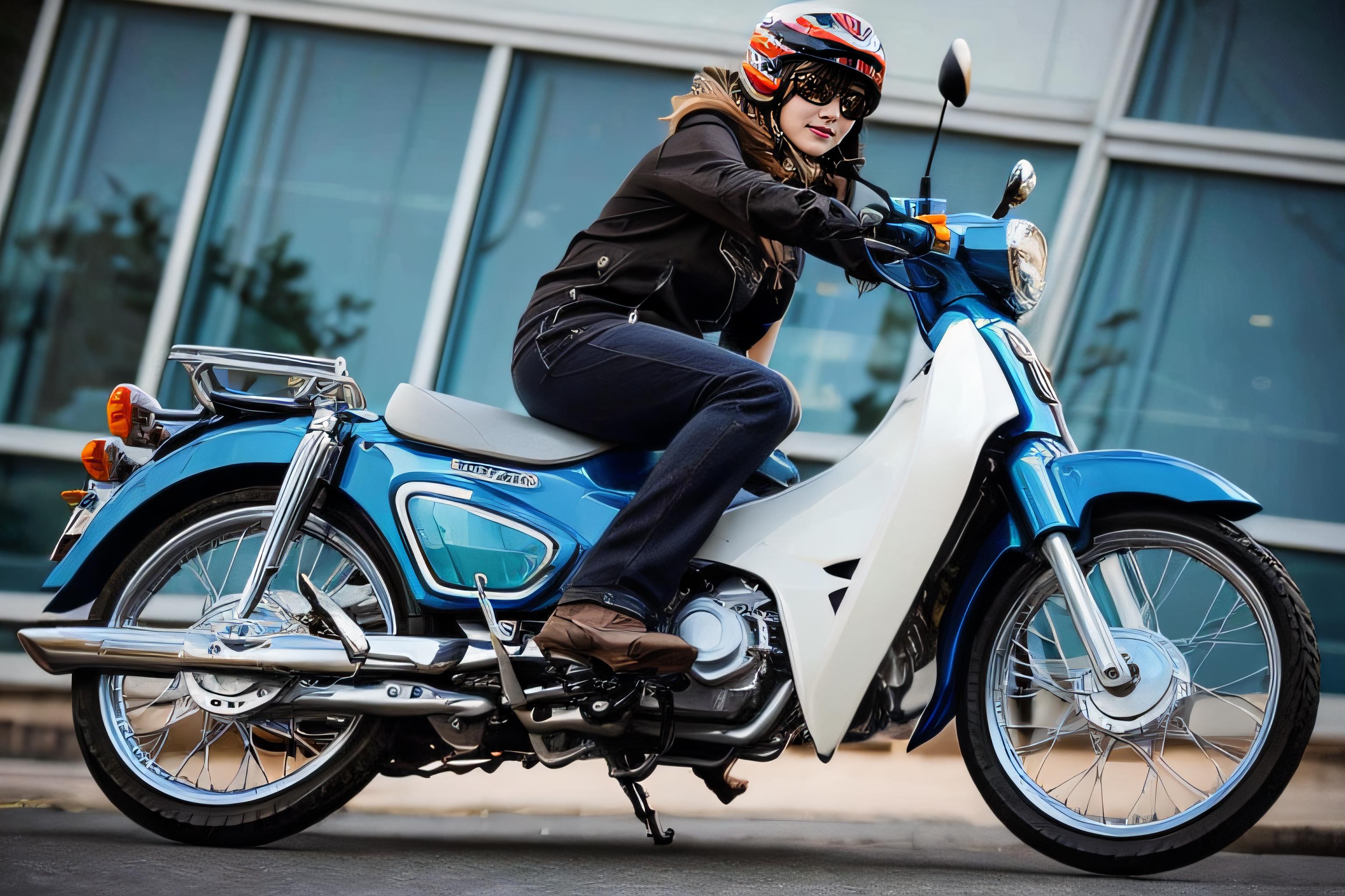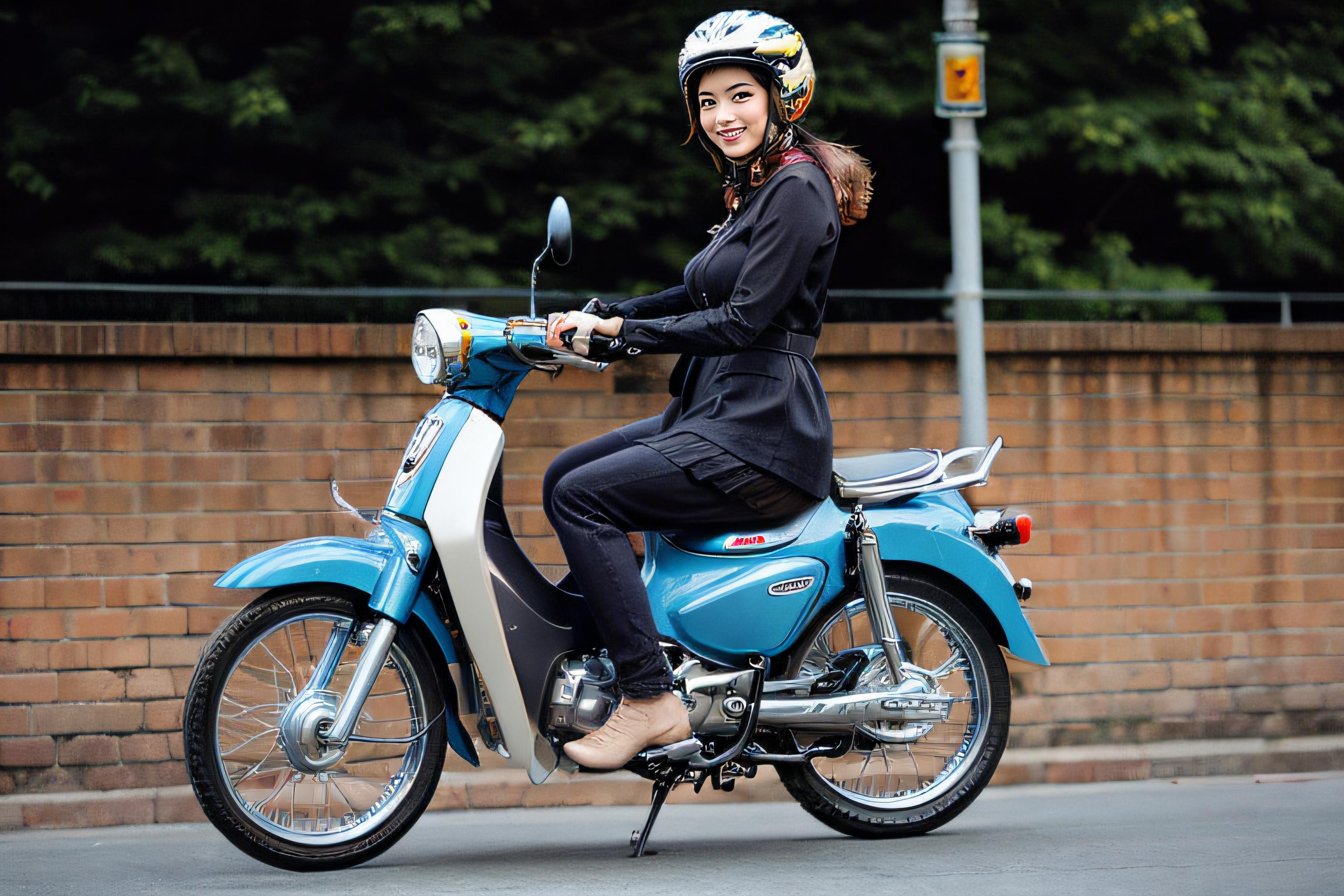 (riding <lora:HondaCub-v1.0:0.7>)