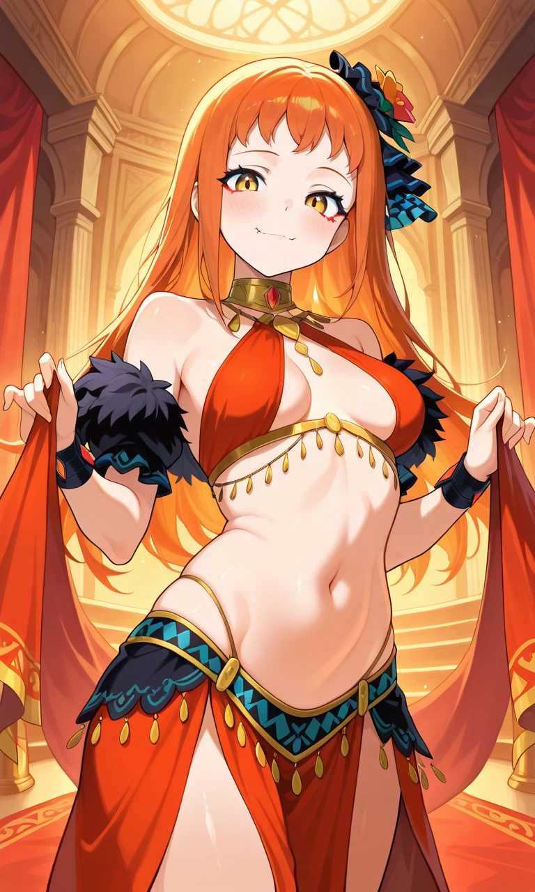 panette, orange hair, long hair, hair accessory, black dress