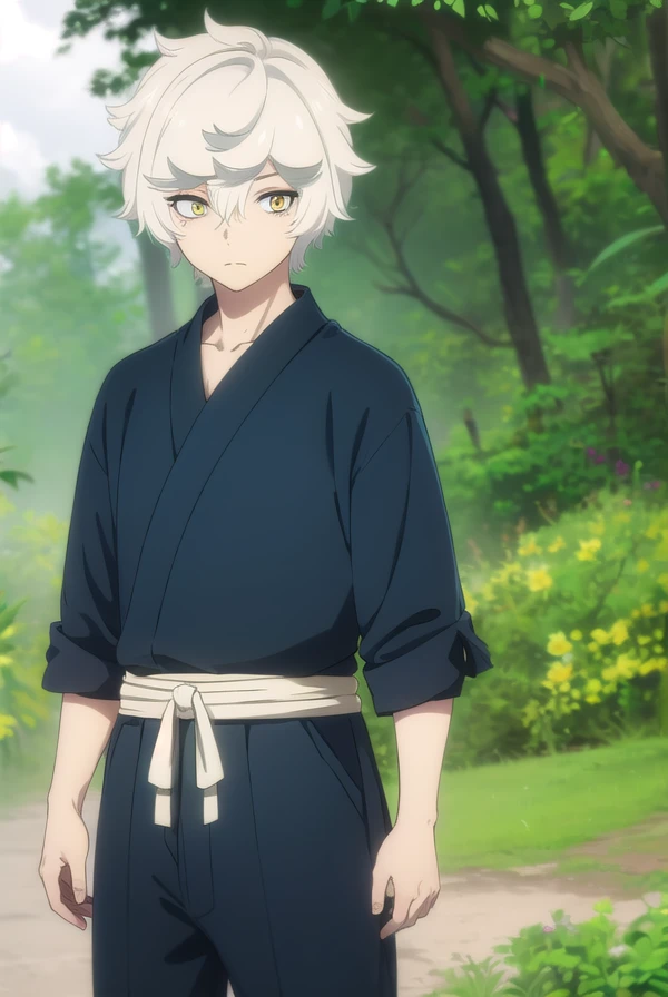 gabimaru, short hair, (yellow eyes:1.3), white hair, male focus,