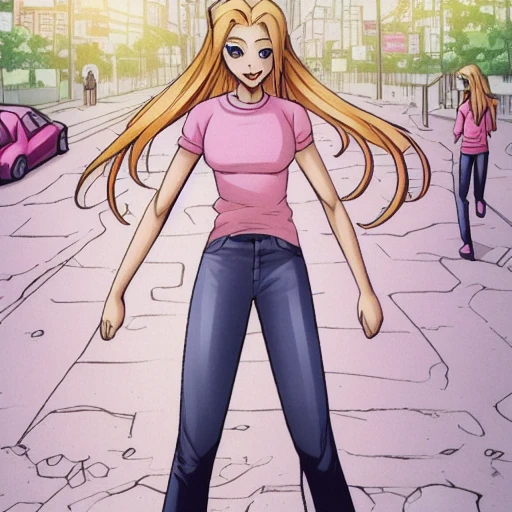 Prompt: Katie_MC2, long hair, blonde hair, blue eyes, pink lips, lips, lipstick, breasts, pink nails, nail polish