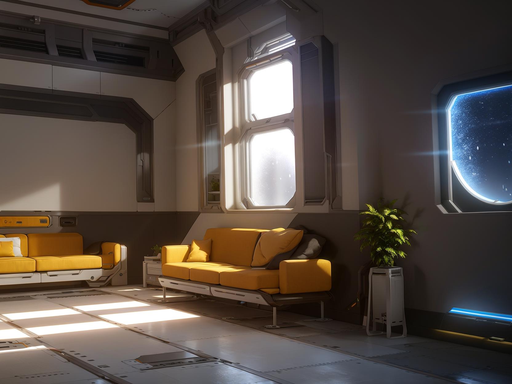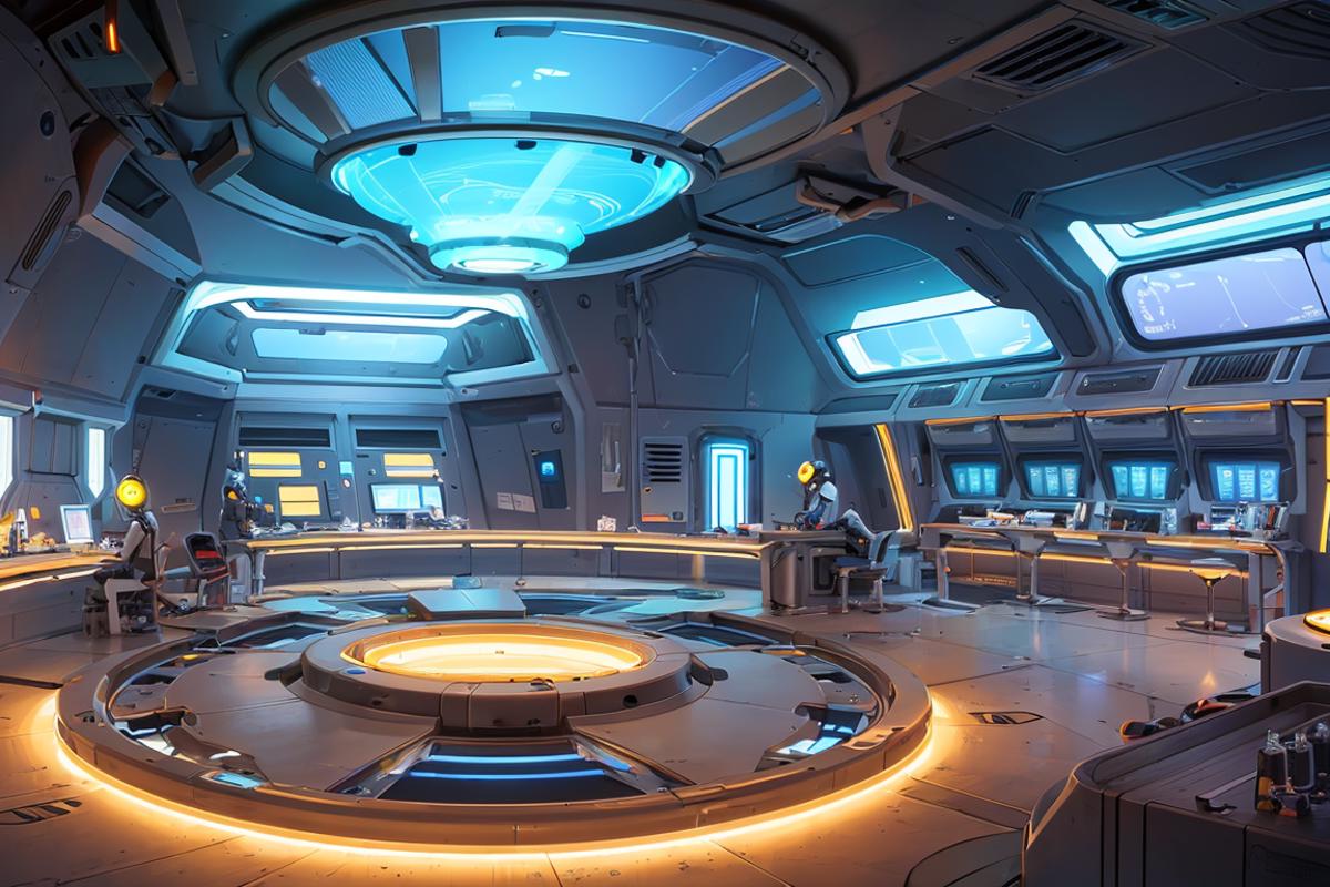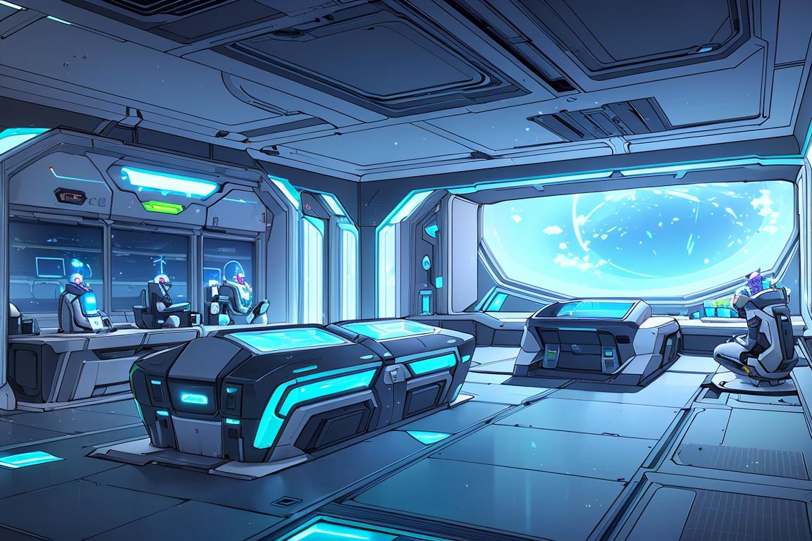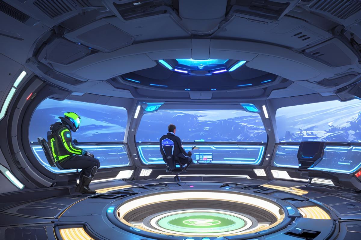 Space capsule trigger words: spaceship cockpit, science fiction theme