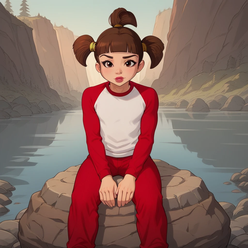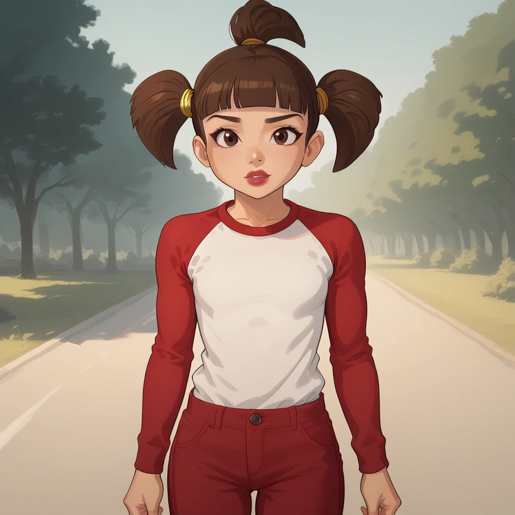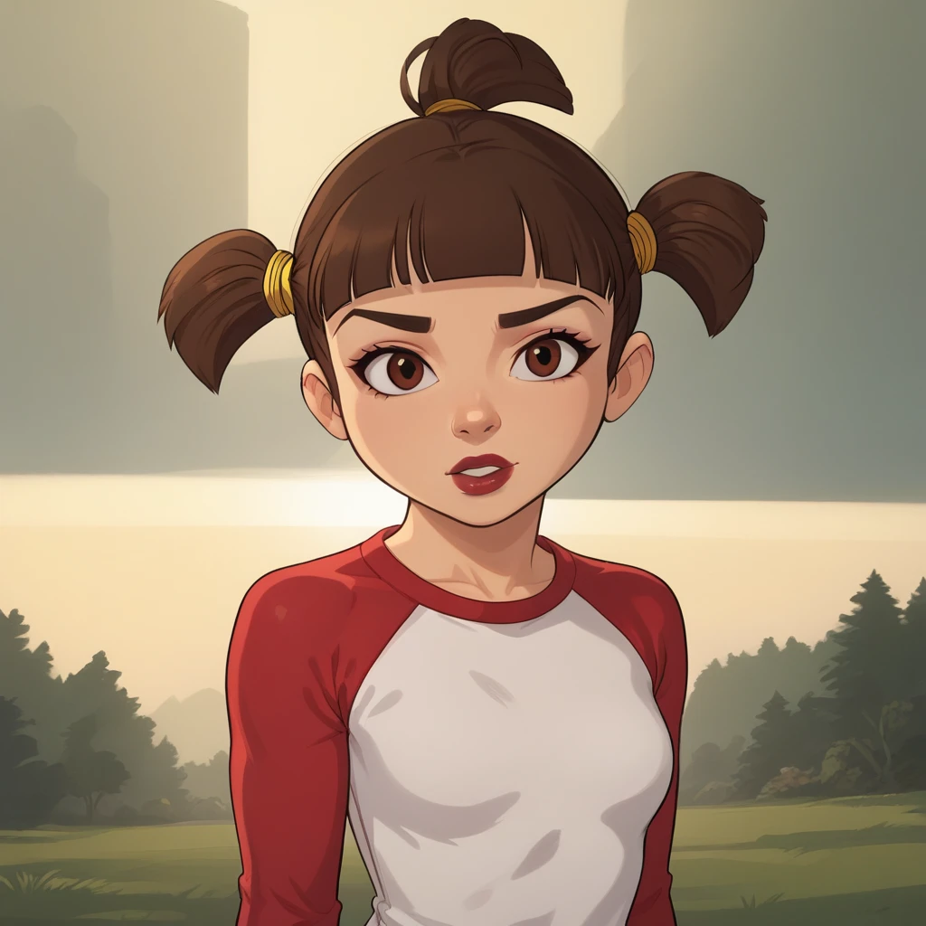 1girl , solo, Trixie, brown hair, tri tails, brown eyes, blunt bangs, lipstick,