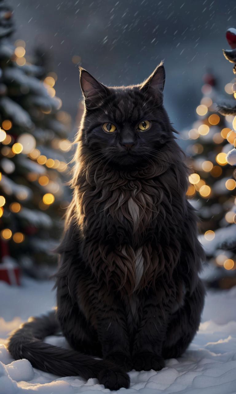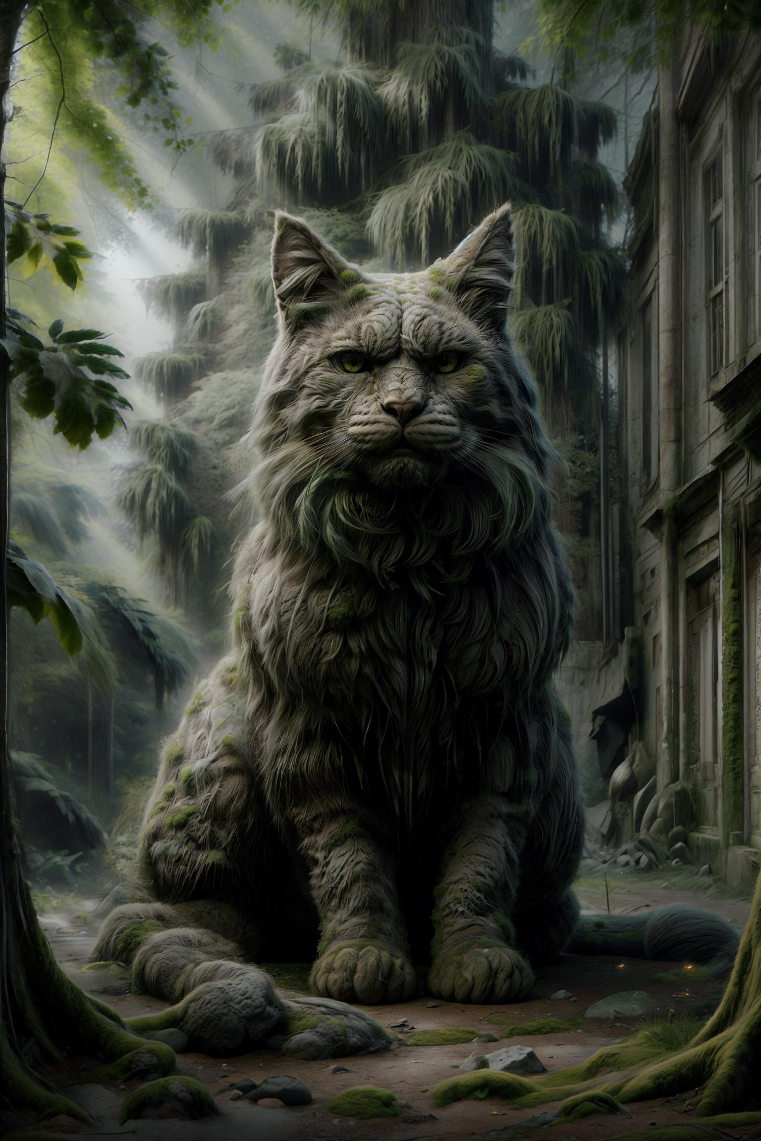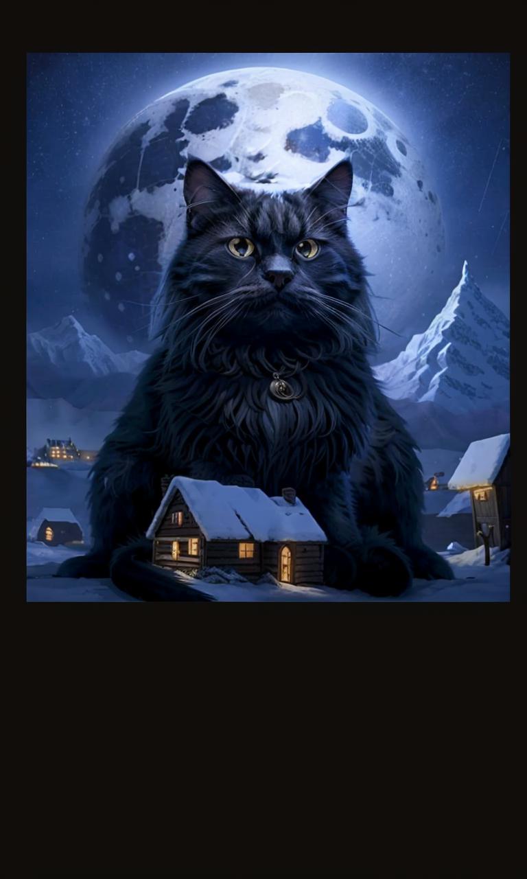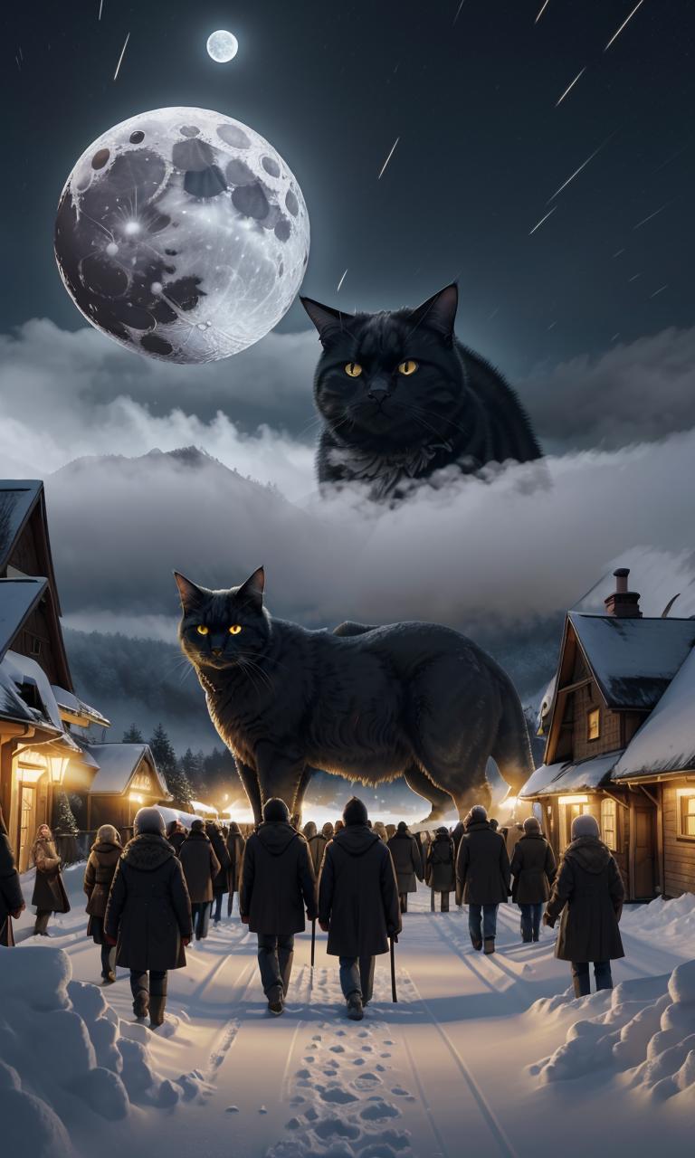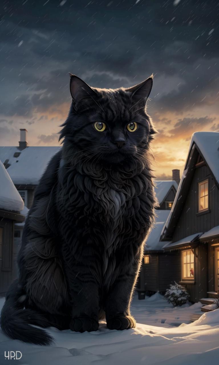Best prompts to use are Giant or Gigantic cat, snowy, glowing eyes.