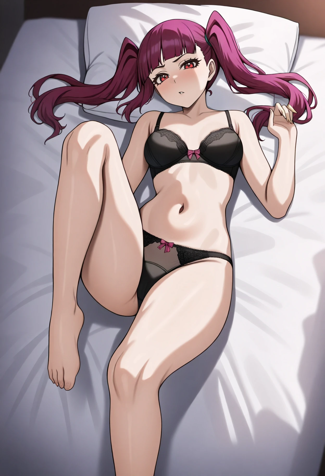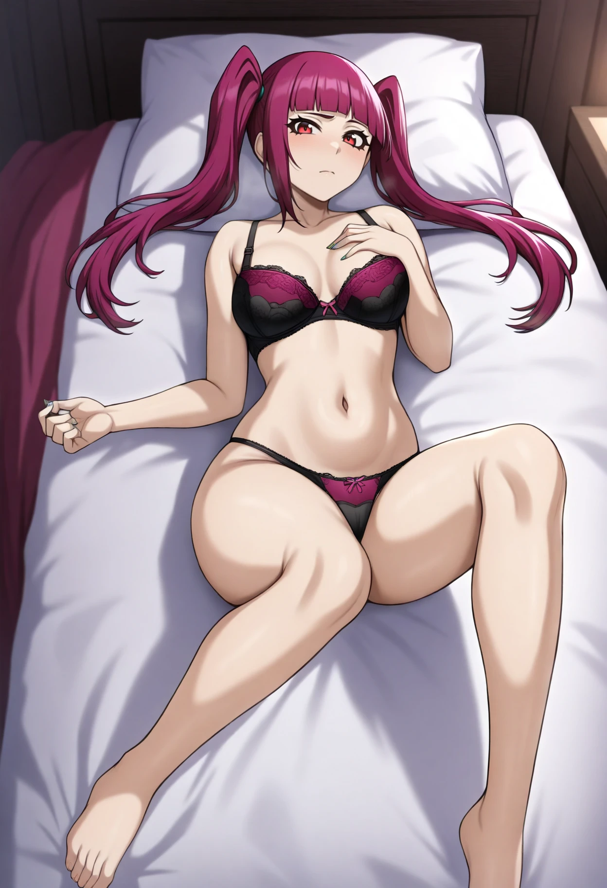 Basic prompts : 1girl, rirukadokugamine, purple hair, twintails, long hair, red eyes