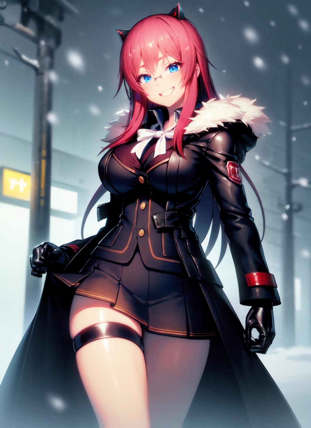 WARNING: source images are limited almost exclusively to the VN, where she wear just that outfit. Hence, the LORA is stubborn when trying to make her wear other things (try decreasing strength and use negatives)