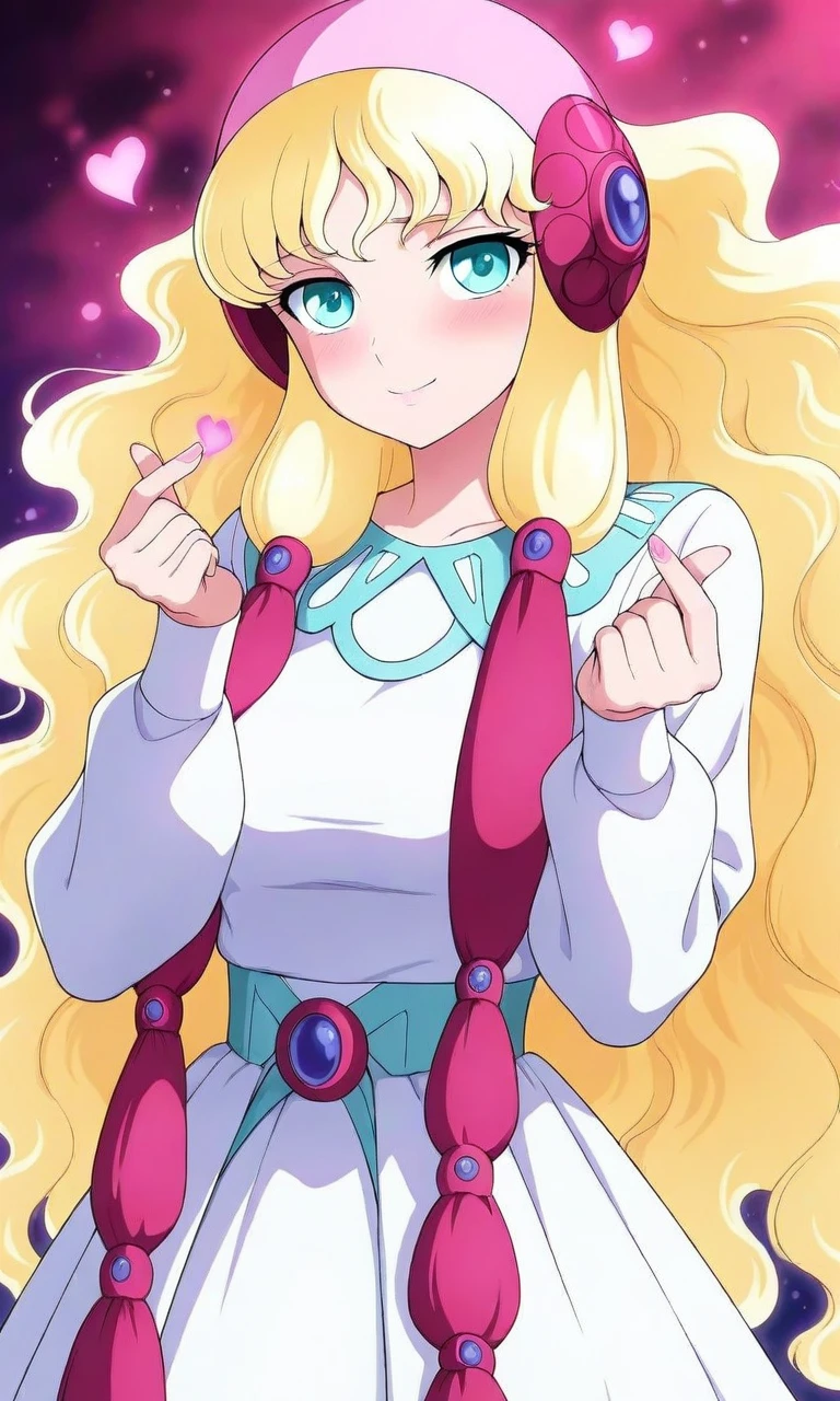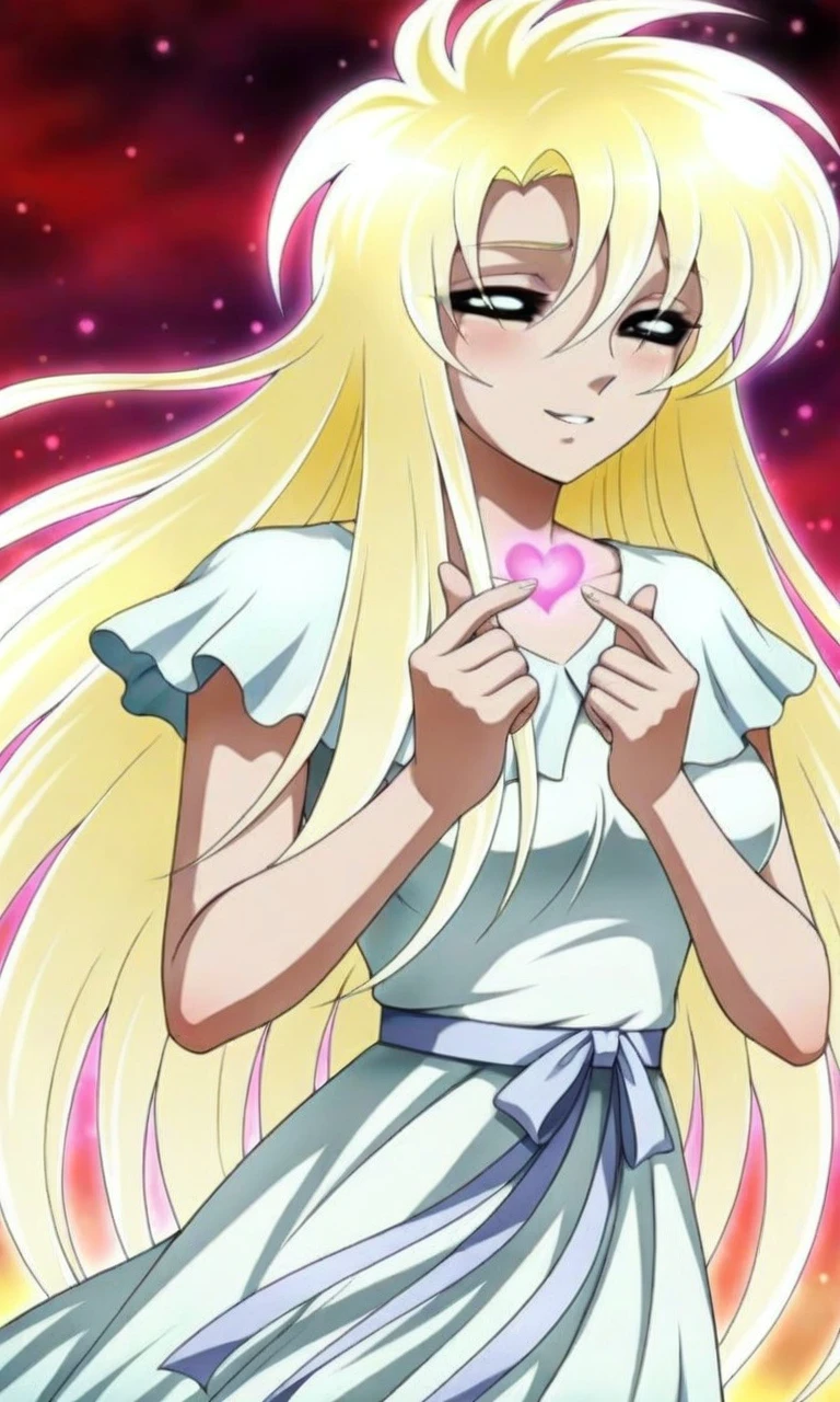 Eurydice, blonde hair, long hair, light blue dress,blue belt