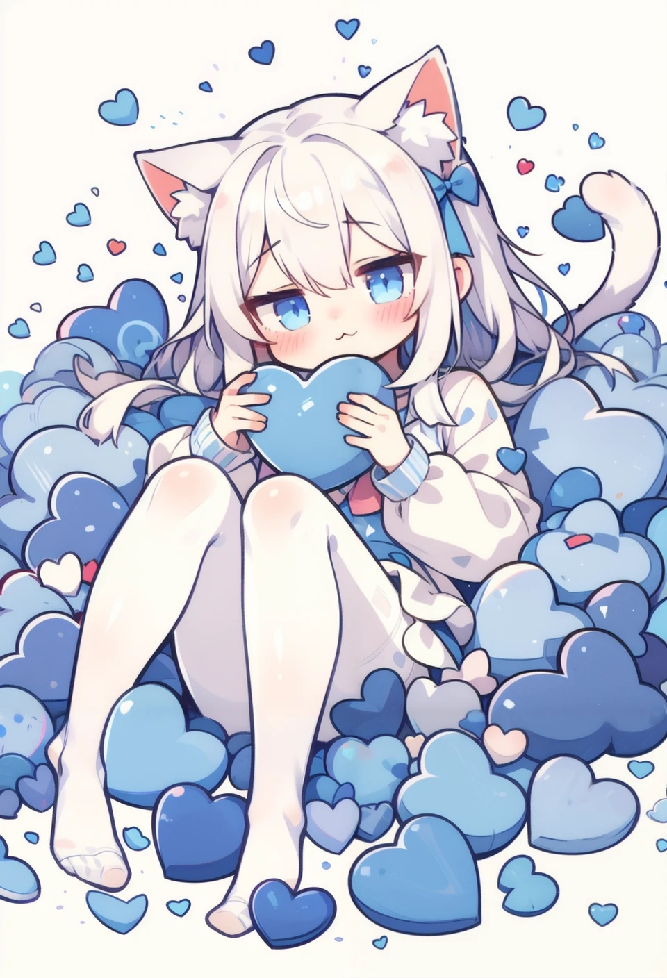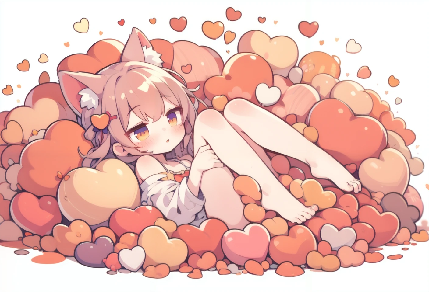 たくさんのハートの中にキャラクターがいるイラストを生成するLoRAです。