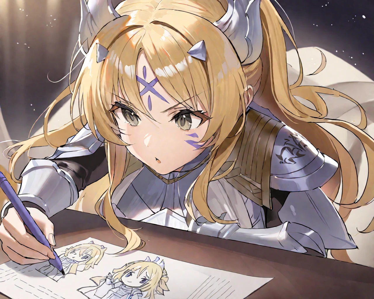 blonde hair,armor,facial mark