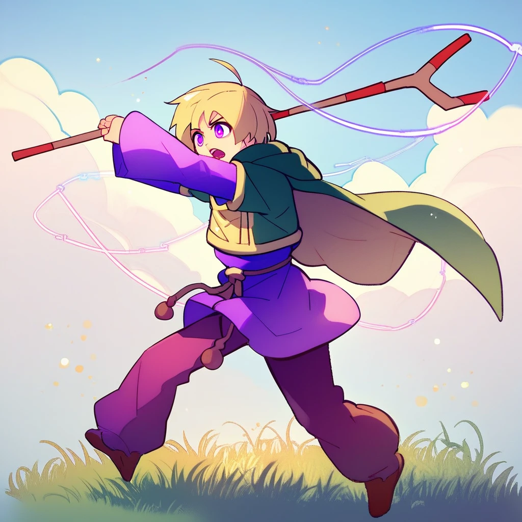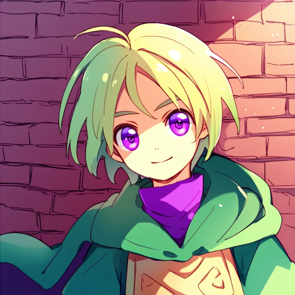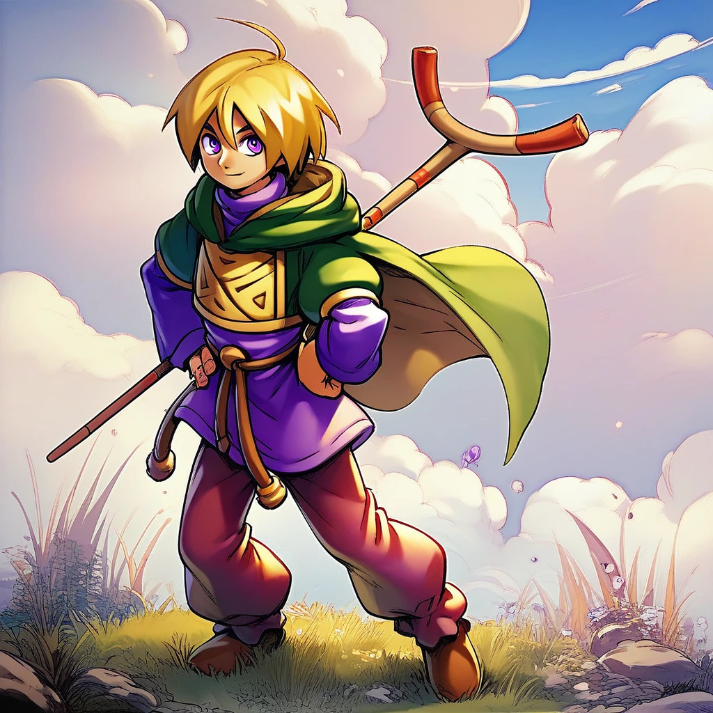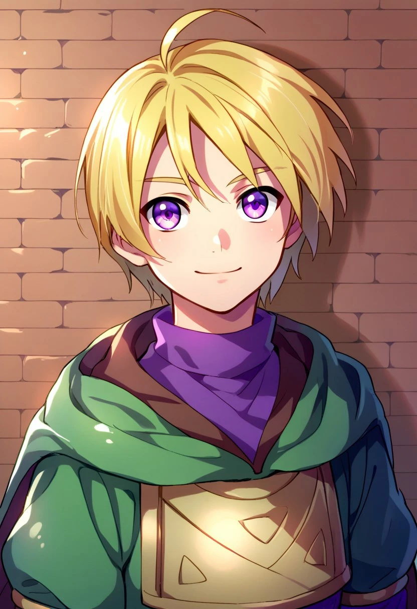 G_S_J_A, ahoge, blonde hair, short hair, purple eyes,