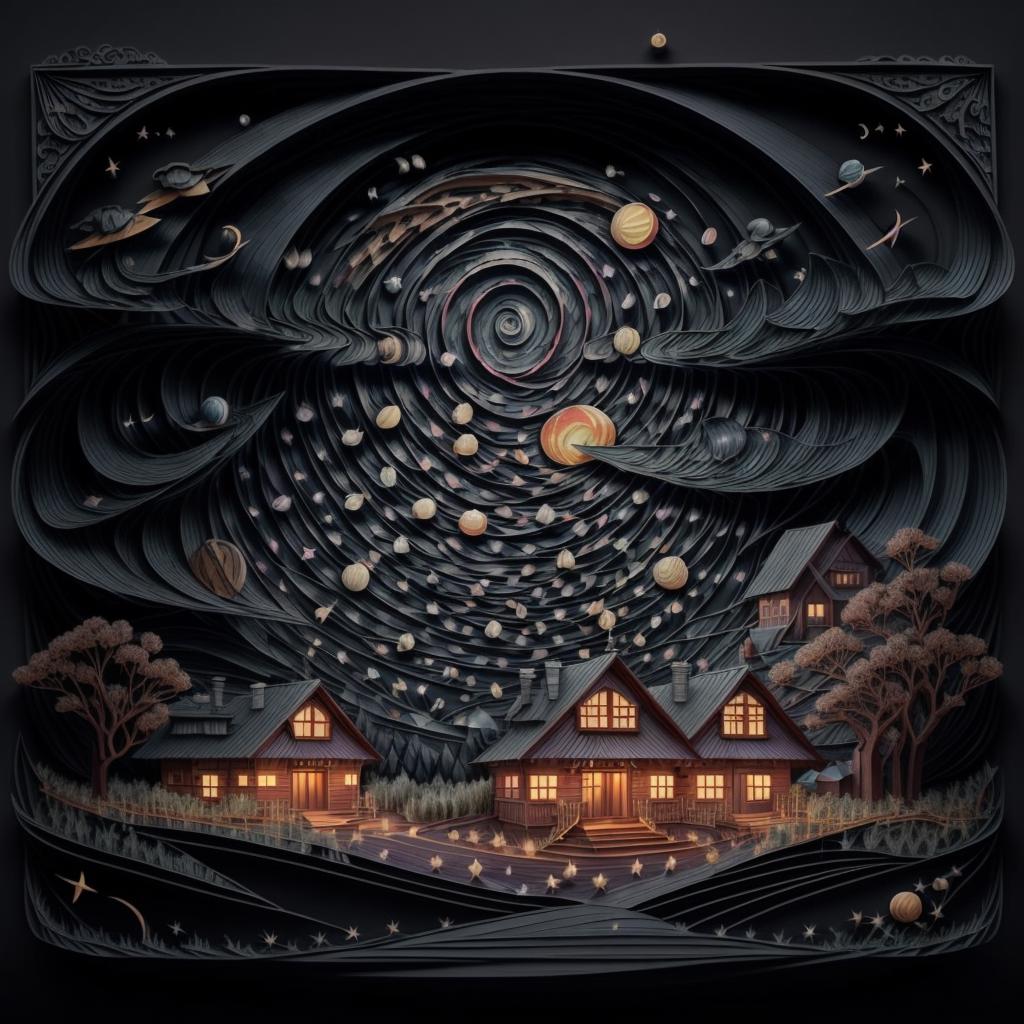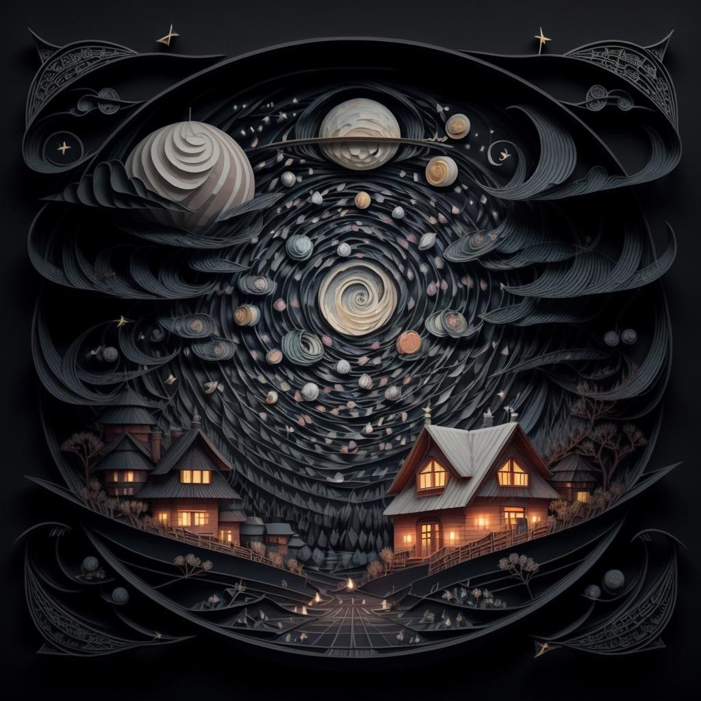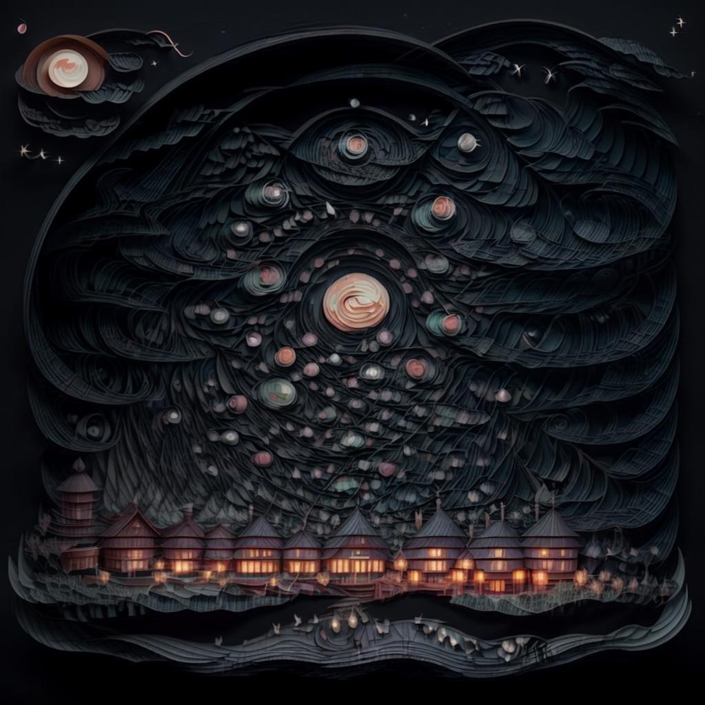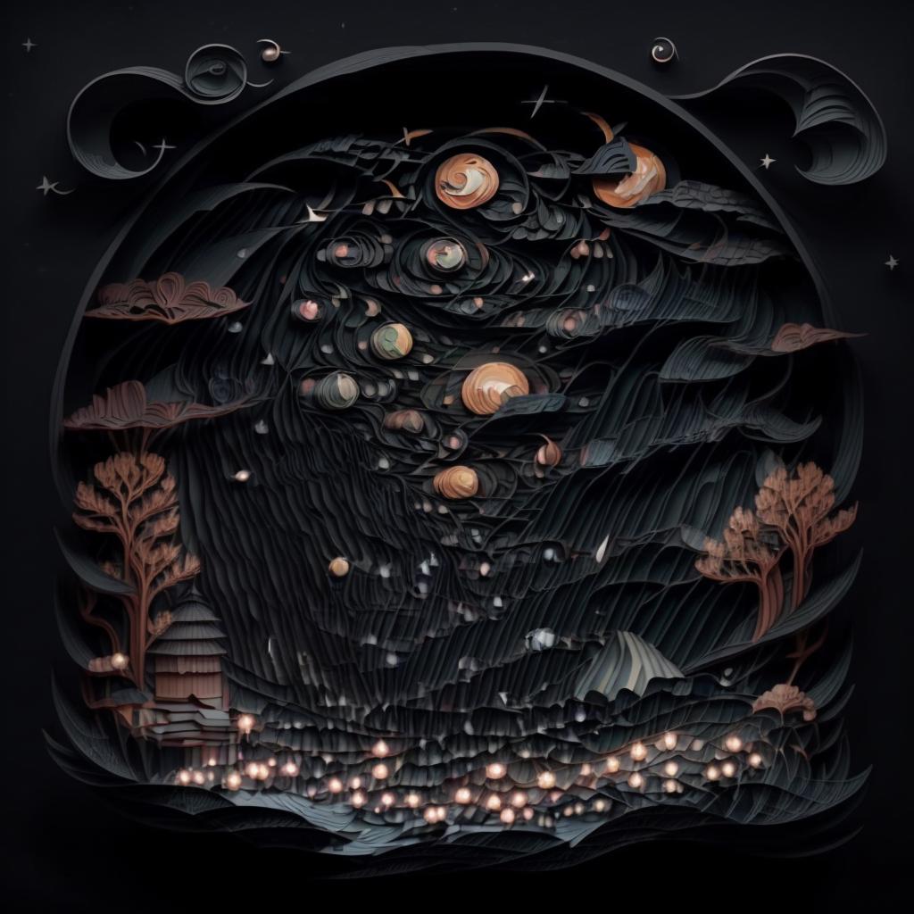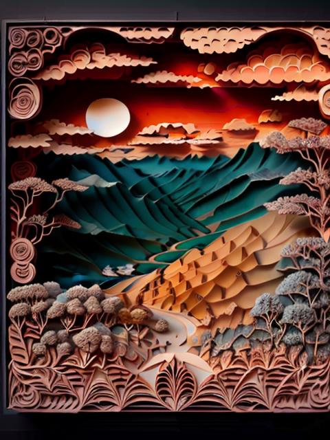 建议写上的关键词:regal, high detail, fractal, 3d depth, 3D graphics with simplistic polygon shapes, intricate designs, delicate patterns, shadowbox frame, silhouette, kirigami, scherenschnitte,
