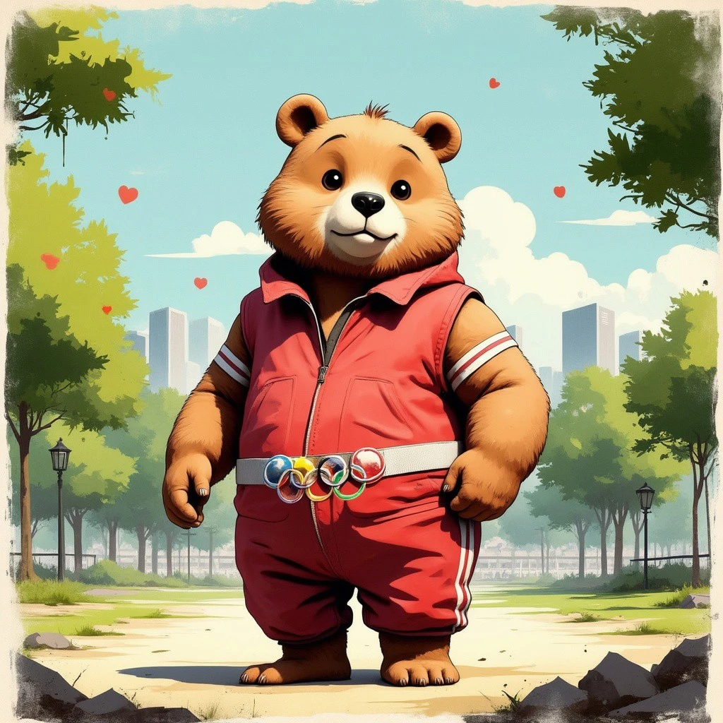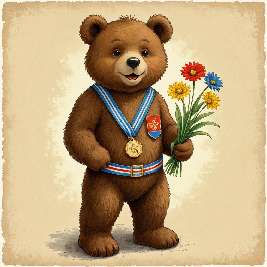 The mascot of the 1980 Olympic Games in the USSR, the art style is retro, imitating postcards from the Soviet era of the 1980s: soft edges, even colors, a minimum of shadows and the feeling of drawing by hand. No additional elements or accessories — focus on the iconic image of the bear. I hope this little bear will bring you good luck, as he has brought it to me more than once.