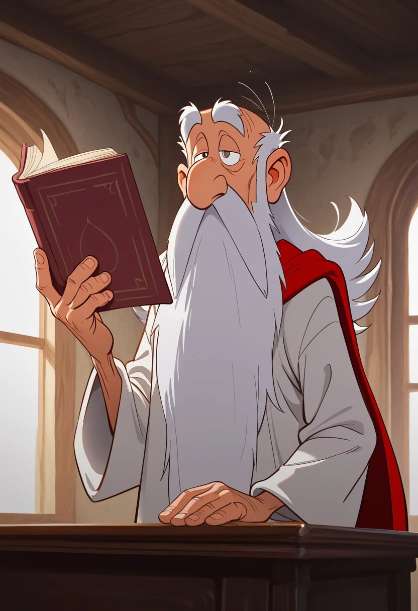 Panoramix, 1boy, broad shoulders, mature male, human, white hair, gray eyes, facial hair, beard, mustache, thick eyebrows