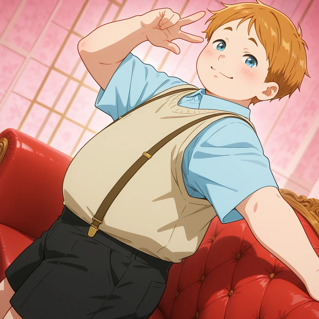 Negative prompt: eating, big cheek, cheek bulge, shota, polo_shirt, t-shirt,